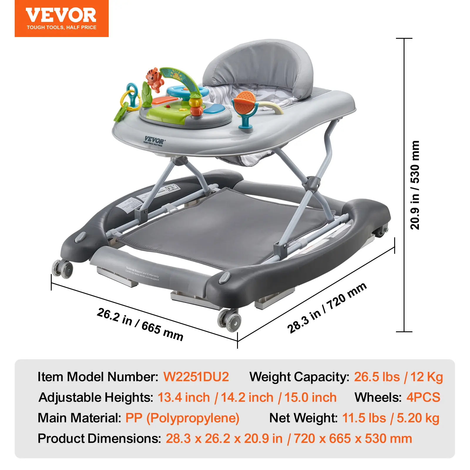 • 4 in 1 Multi-functional Baby Walker: VEVOR 4-in-1 baby walker is the perfect companion for helping kids standing and walking, enhancing their coordination, muscle strength, balance, and exploration. With 4 versatile modes: Learning-Seated, Walk-Behind, Rocker, and Bouncer, it adapts to your baby's evolving needs at every stage of growth. (Suitable Age: 6-24 Months)