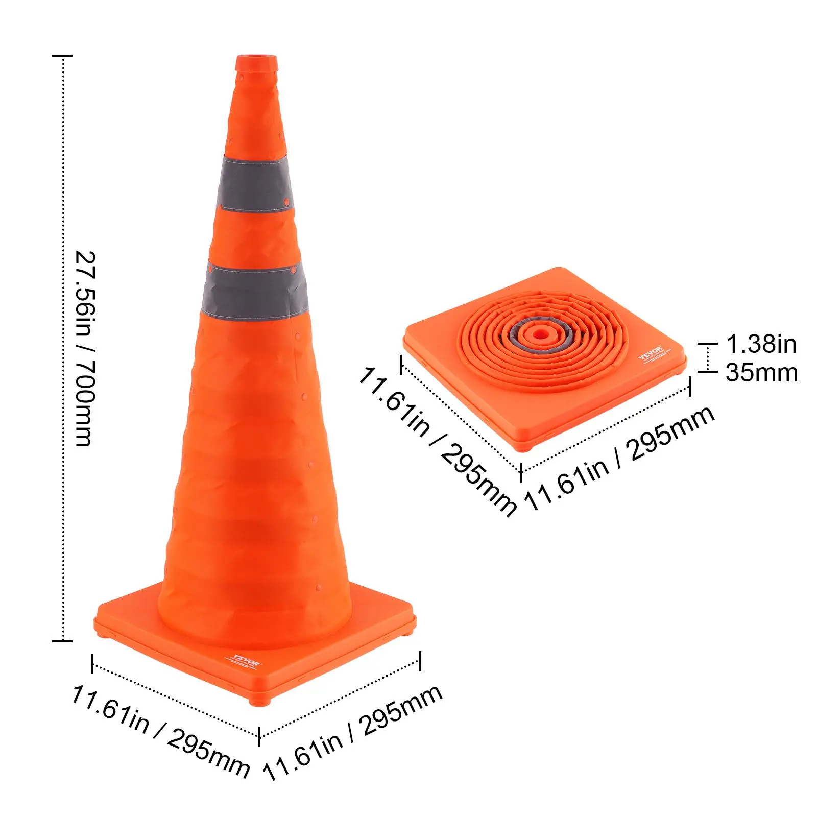 • Sturdy and Reliable: With a base size of 11.61x11.61 inches, these construction cones can be stably placed on various road surfaces, effectively alerting pedestrians and vehicles to exercise caution in all directions.