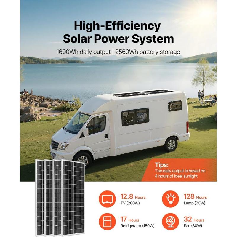 5. VEVOR 400W 12V Complete Solar Power Kit, 4PCS 100W Monocrystalline Solar Panels+ 12.8V 200Ah LiFePO Battery+ 40A MPPT Charge Controller+ 2000W Power Inverter for RV Home Camping Boats Off - Grid
