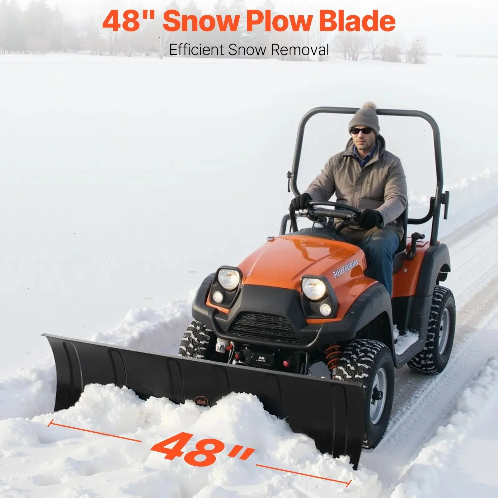 • Versatile Applications: The 48-inch snow plow is ideal for residential driveways, farm roads, parking lots, and rural paths. It helps clear snow in one pass, improving efficiency with every use.