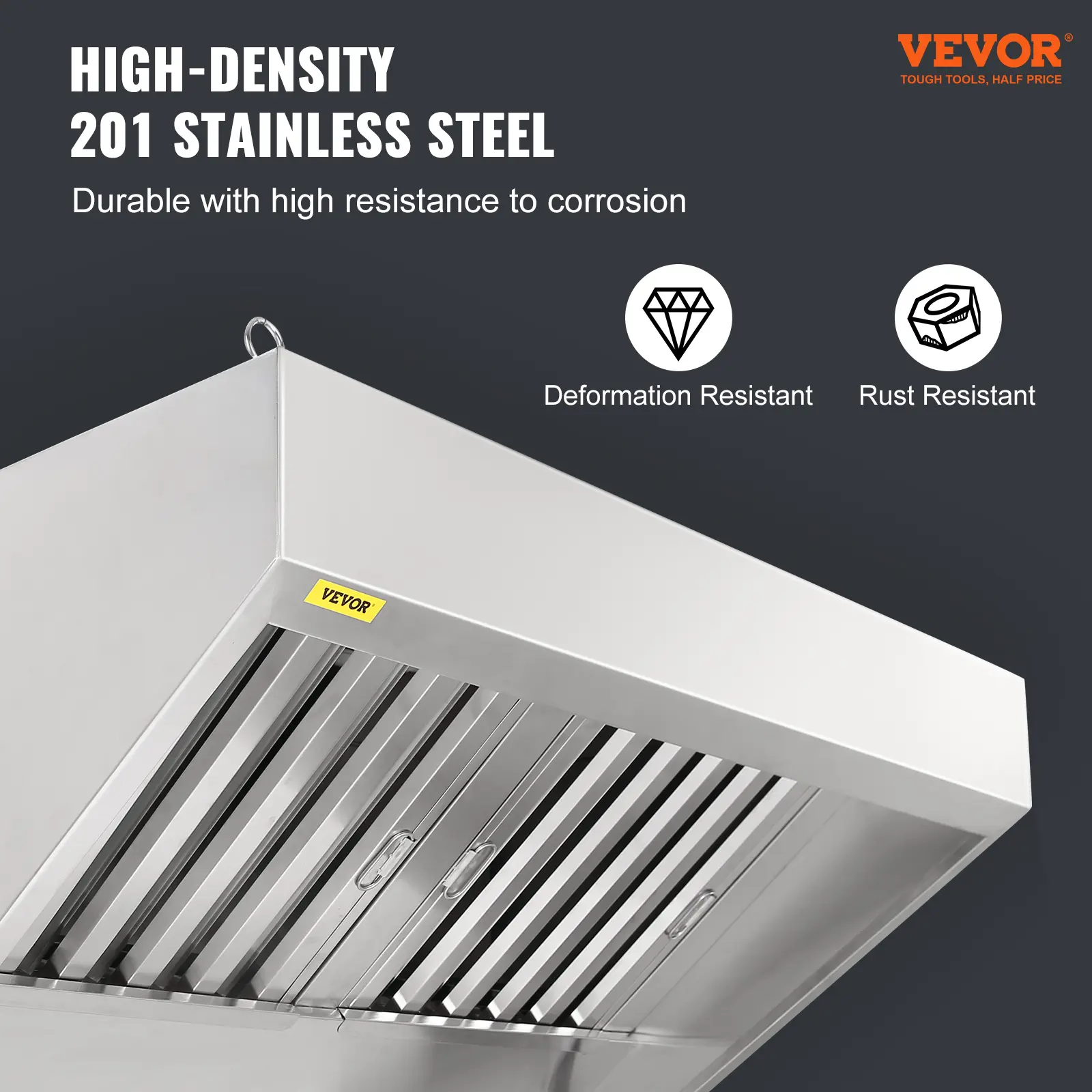 • Easy Installation: No complicated assembly required! Our rust-resistant vent hood is pre-assembled as one unit and comes with hanging loops for convenient installation. Easily install the restaurant hood vent and upgrade your kitchen with ease.