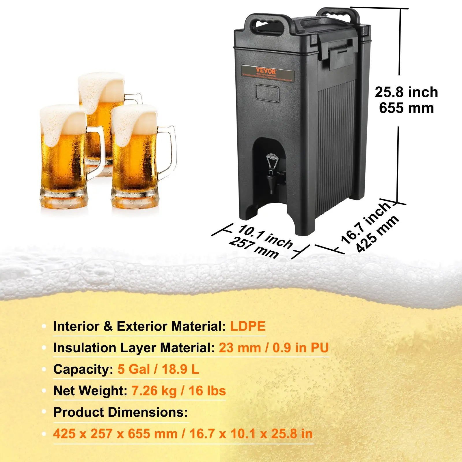 • Hassle-Free Mobility: Our thermal beverage dispenser is made from lightweight materials and weighs just 16 lbs (7.26 kg). The two ergonomically designed integrated handles align perfectly with your fingers, making it a breeze for you to lift and carry anywhere you want.