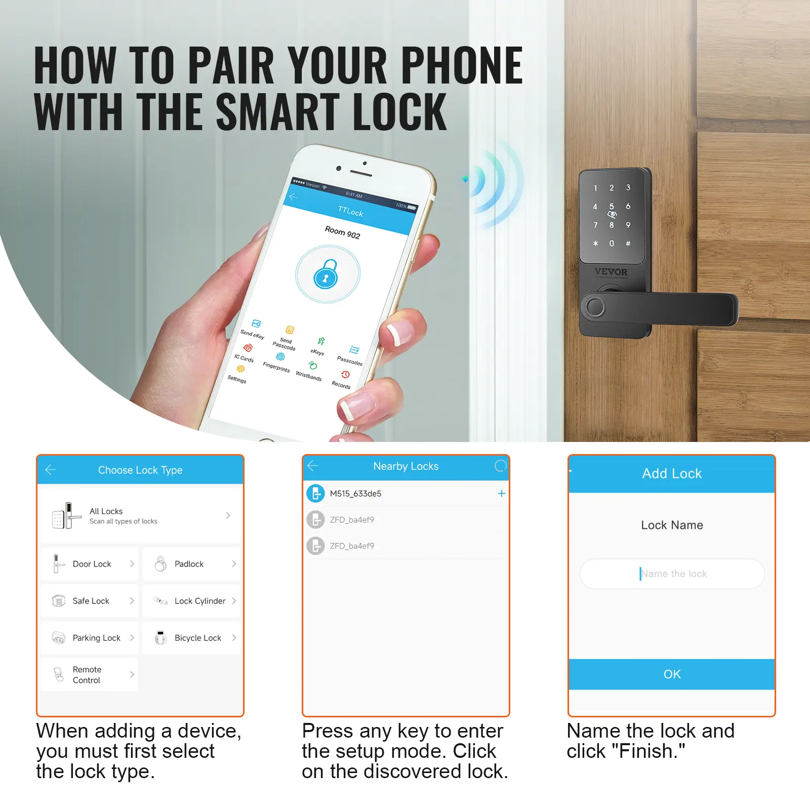 ·Smart App Control: Gain the ability to unlock through the app, manage passwords, view unlock history, and share Ekeys. You can easily authorize family members, guests, or tenants to use the app, granting them convenient access rights. The convenience control of our smart lock takes home security to a whole new level.