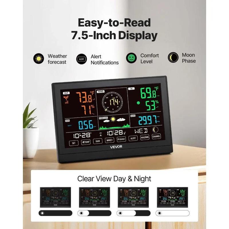 ·7.5-Inch HD Display: Enjoy a crystal-clear view of all your weather data with our indoor outdoor weather station. The large display with 4 brightness levels fits well in your living room or bedroom for day or night reading