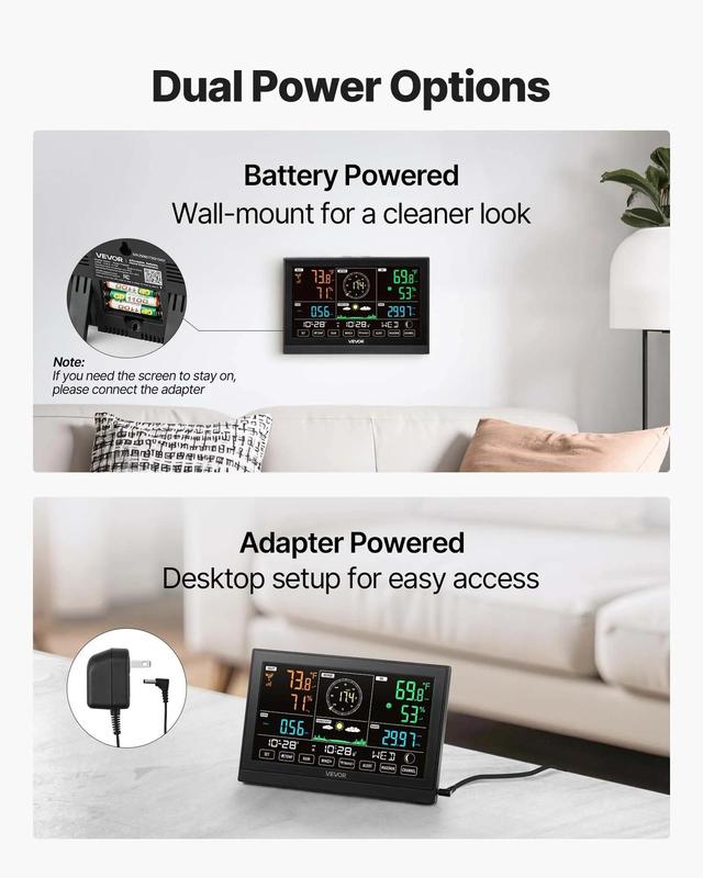 ·5-in-1 Outdoor Sensor: Monitor temperature, humidity, rainfall, wind speed, and direction—plus dew point, moon phases, and 6-12 hour forecasts. Get weather information you need to plan smarter from home with our wireless weather station