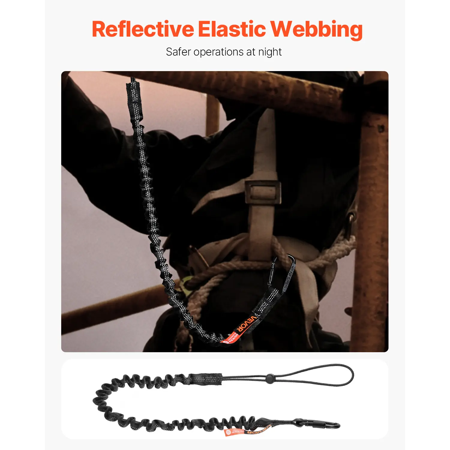 • Safer Nighttime Work: Work safer at night with our reflective elastic webbing. Specifically designed to enhance visibility in low-light environments, our safety fall protection tools leash ensures you're seen during nighttime operations and and greatly enhances working safety