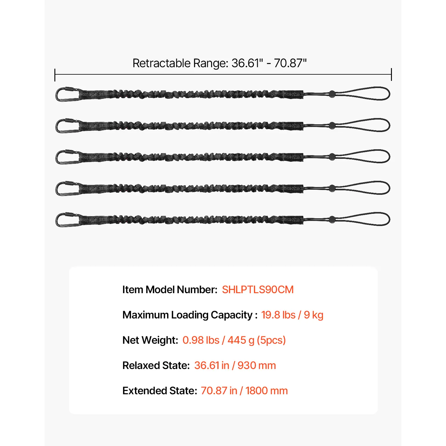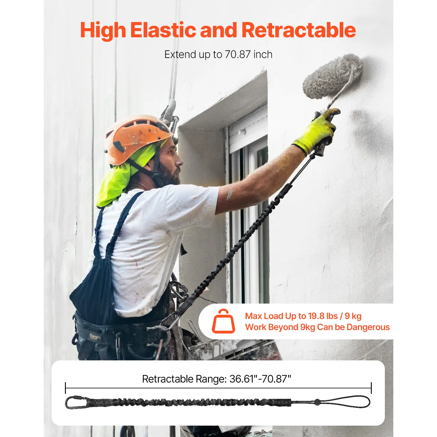 • High Elastic and Retractable: These retractable tool safety lanyards can stretch from 36.61" to 70.87" (930 to 1800 mm), offering flexibility for different work needs. With a max load capacity of 19.8 lbs (9 kg), it provides secure, reliable support for tools during high-altitude work