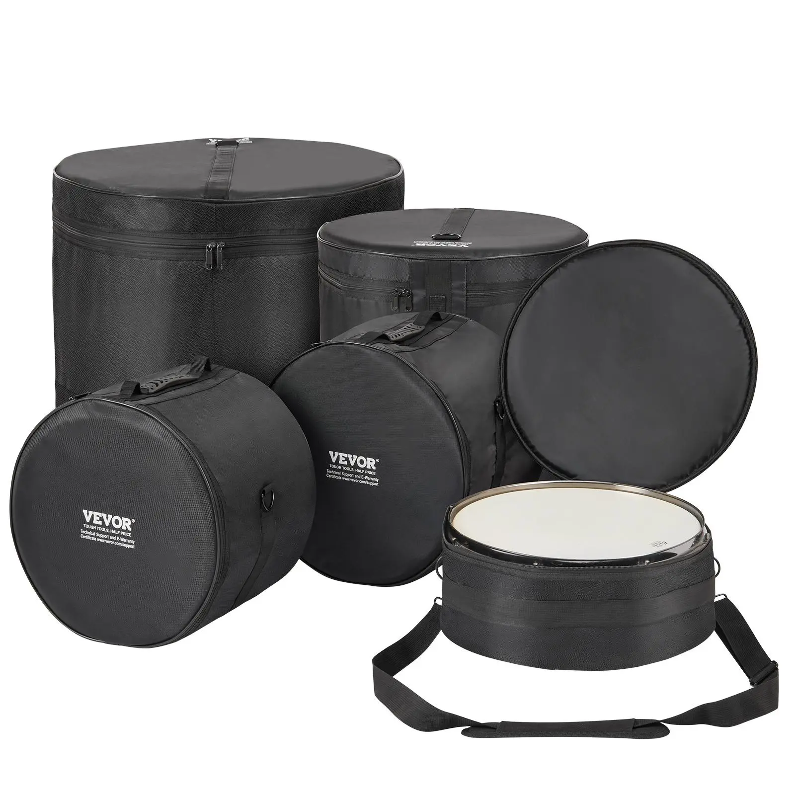 5. VEVOR 5-Piece Drum Bag Kit, , Durable 1680D Oxford Material, Cushioned Cases with 1.5m Removable Shoulder Strap and Carry Handles, Collapsible, Fits 22'' Bass, 12''/13''/16'' Toms, 14'' Snare