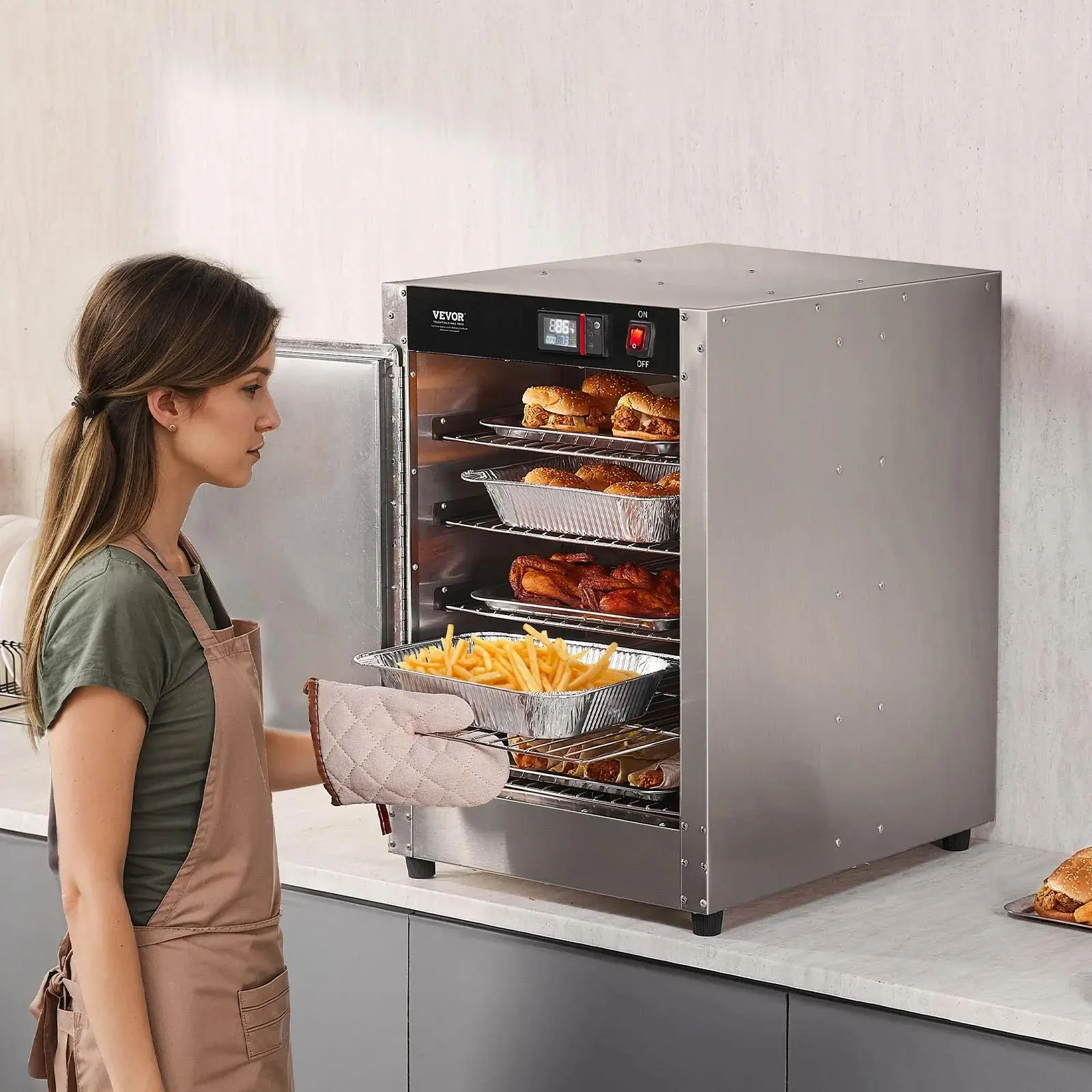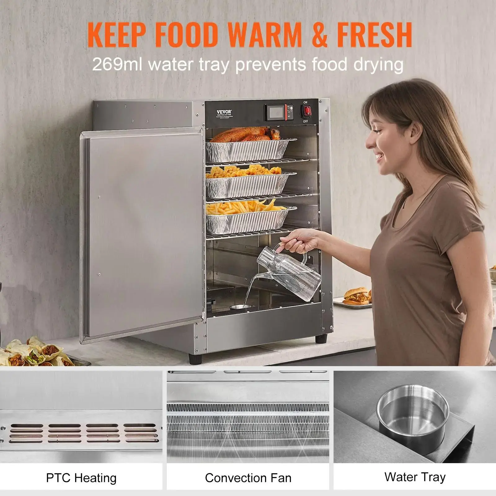 Conclusion: The VEVOR Hot Box Food Warmer is a versatile and reliable solution for keeping your dishes warm and fresh. Its adjustable temperature range, stable heating, and spacious design make it an ideal choice for various settings. Enjoy piping hot meals with this durable and efficient food warmer.