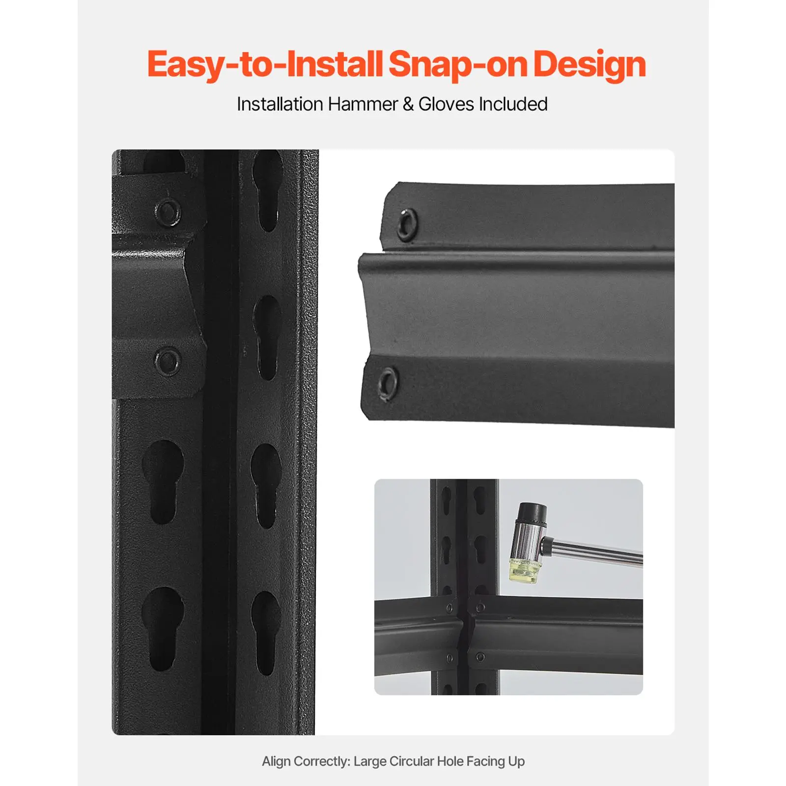 • Easy to Assemble: No complex installation is required! Our heavy duty shelving unit can be assembled by simply pressing, with an included rubber hammer and gloves, making setup effortless.