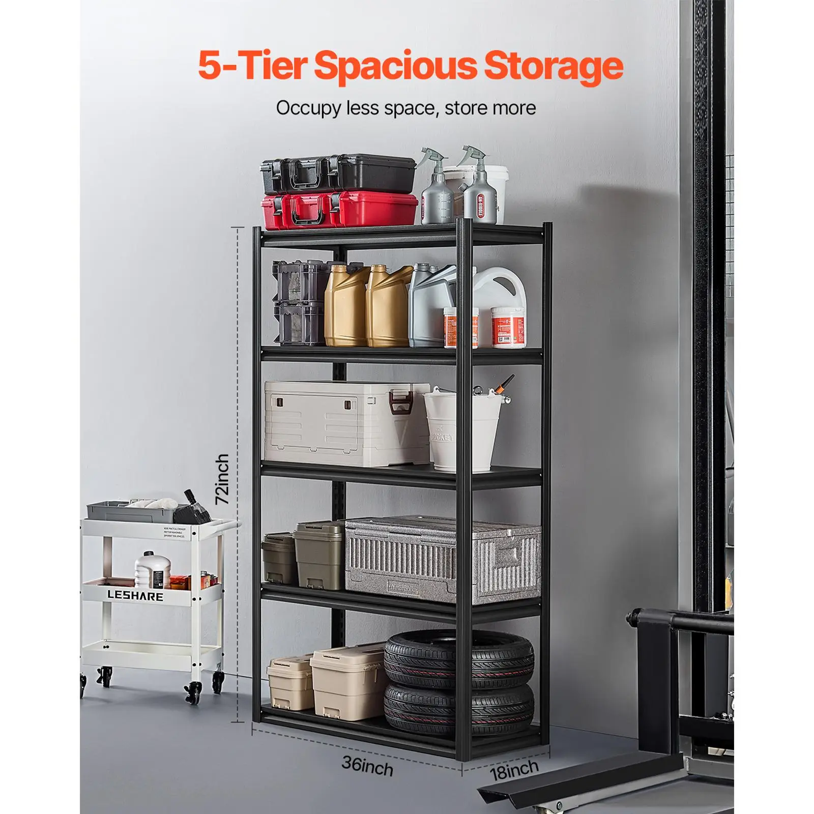 • 2000 lbs Load Capacity: With a total capacity of up to 2000 lbs, each garage shelf holds 400 lbs, allowing you to store more items and tools in your garage or warehouse.