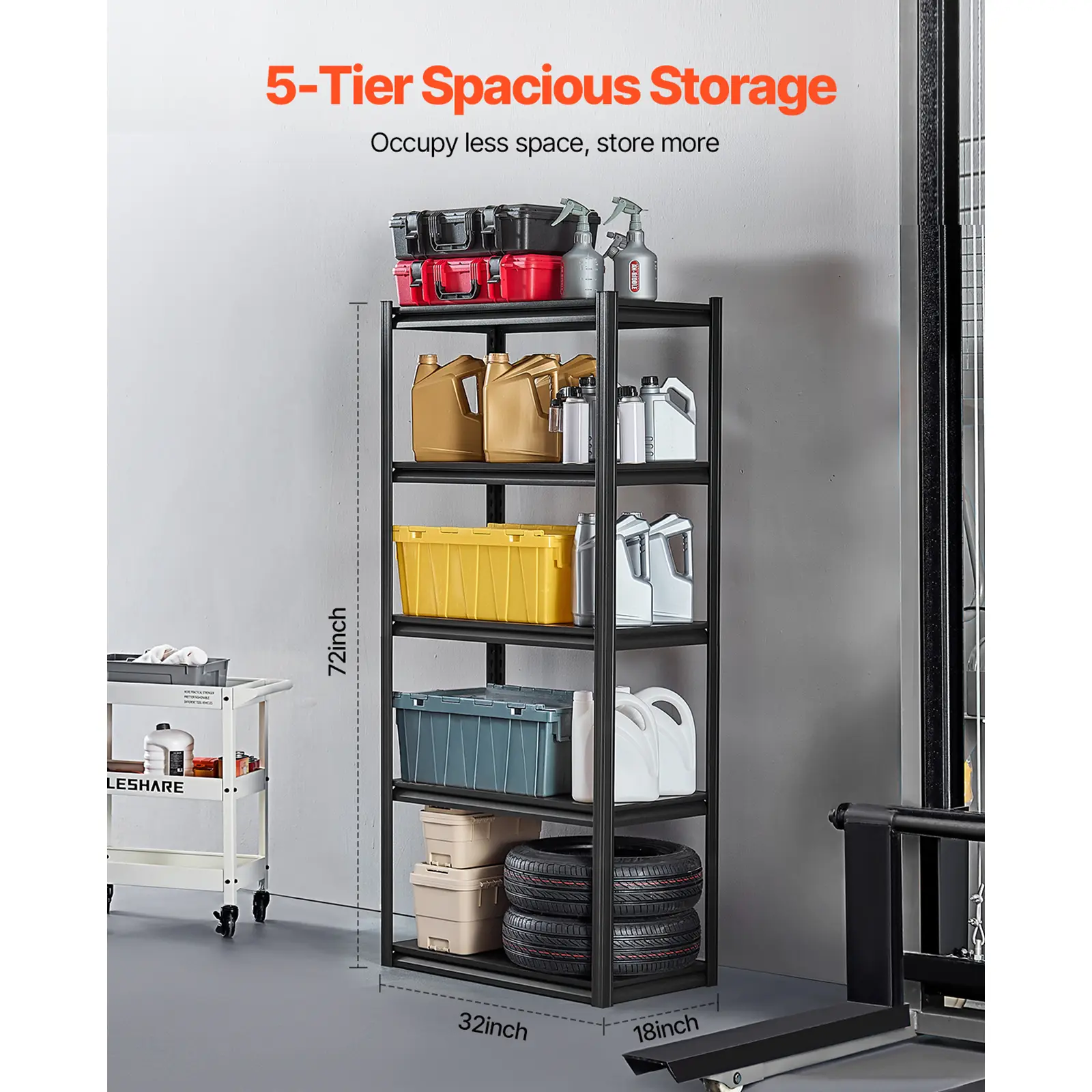 • 2000 lbs Load Capacity: With a total capacity of up to 2000 lbs, each garage shelf holds 400 lbs, allowing you to store more items and tools in your garage or warehouse.