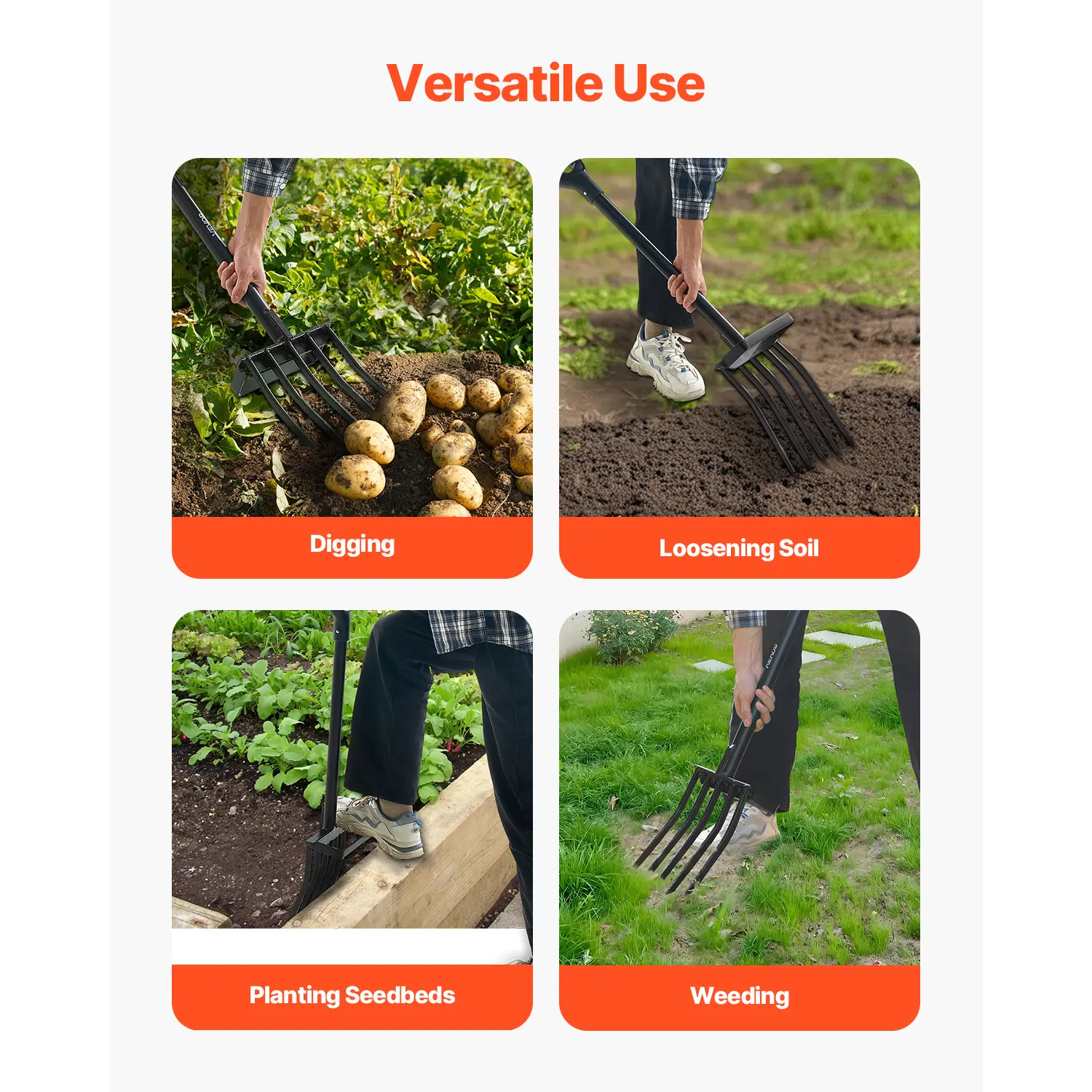 • Versatile Use: This spading fork garden tool can function as a potato fork, garden rake, barn rake, bedding fork, and more. From gardening to farming, and from home use to professional applications, this tool adapts seamlessly to all your needs.