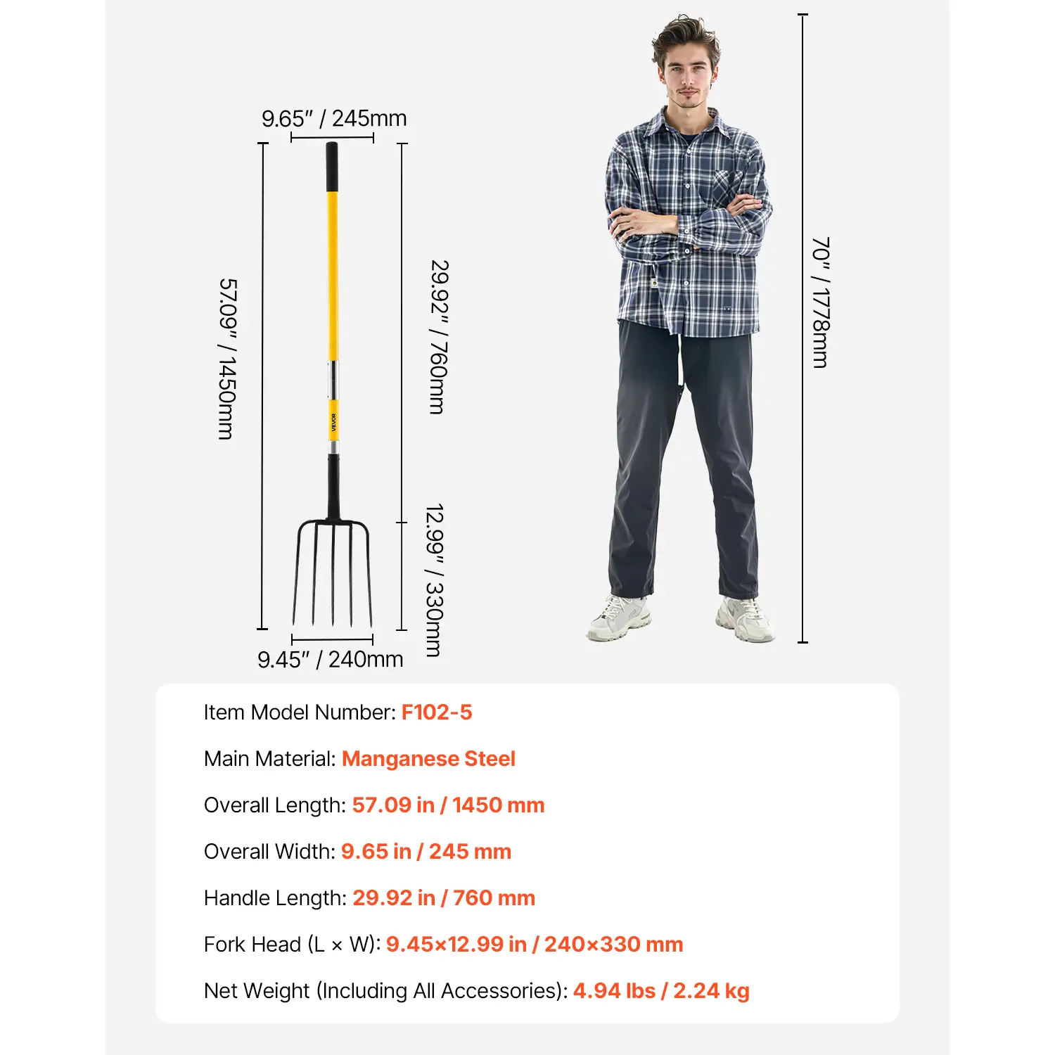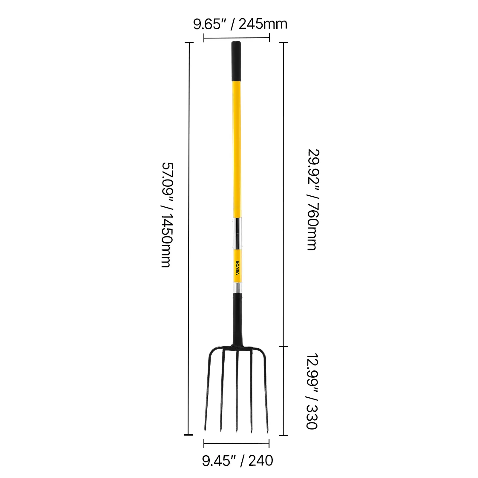 • Easy Control: Standing at 57", this fork is manageable for all users, including older adults and women. It simplifies tasks like turning soil or picking up materials, reducing physical strain and increasing efficiency.