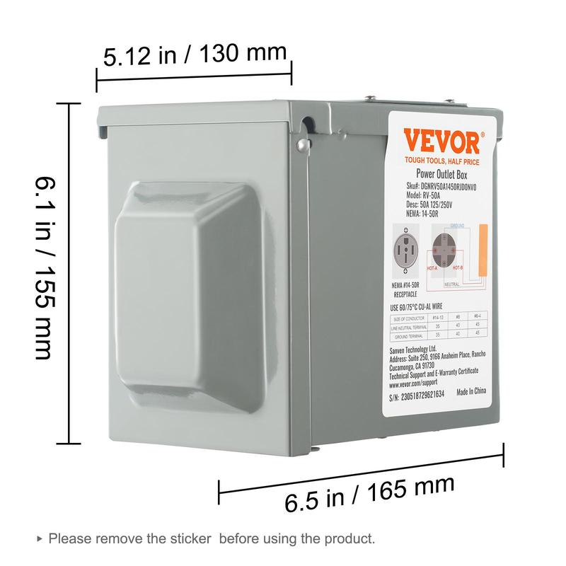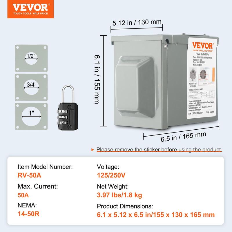 5. VEVOR 50 Amp RV Power Outlet Box, 125/250 Volt, Enclosed Lockable Outdoor RV Receptacle Box, NEMA 14-50R Weatherproof Electrical Panel, for RV Camper Trailer Motorhome Tested to UL Standards