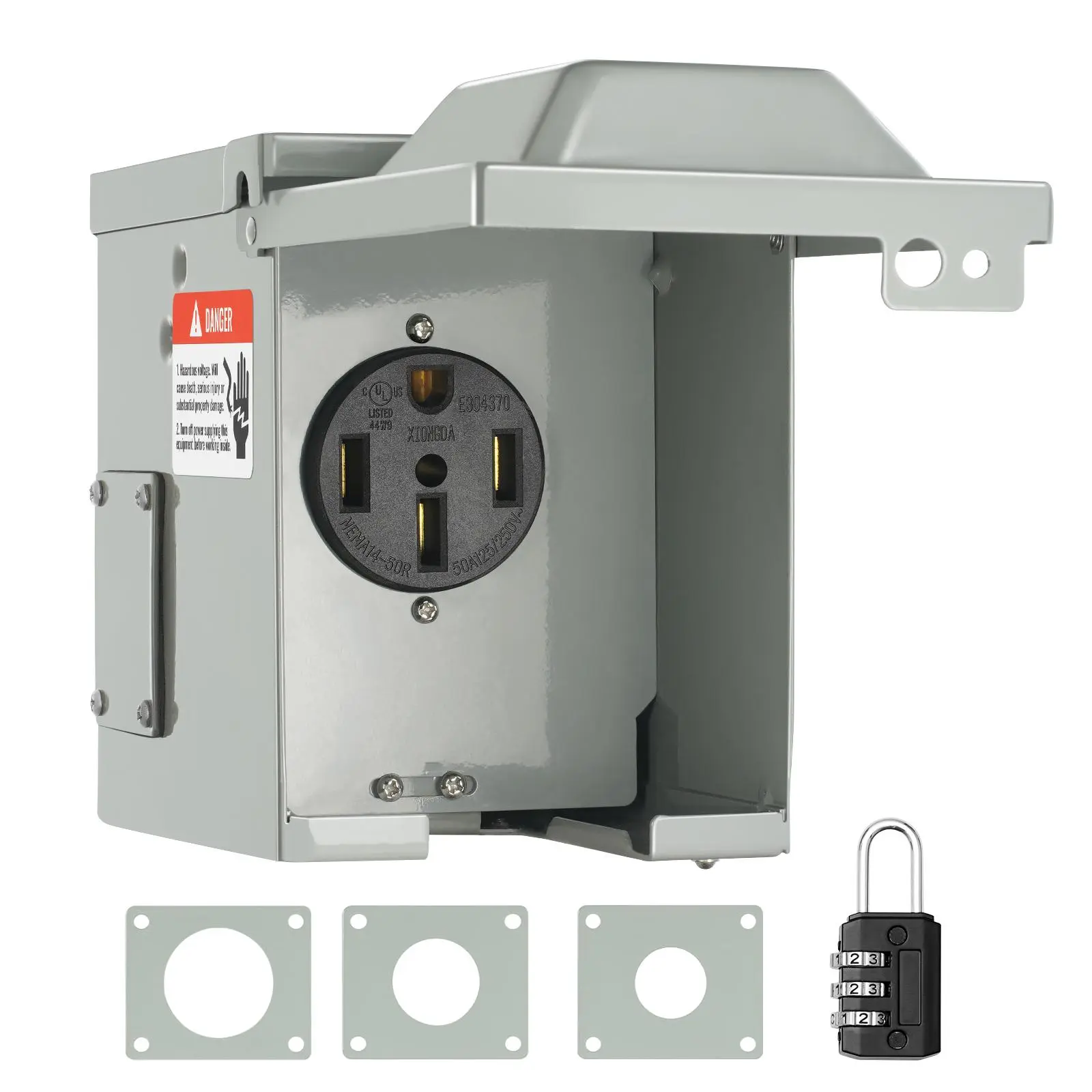 • Well-Designed Structure: The outdoor rv receptacle box features a prominent door panel design, allowing easy closure of the box door when connecting power cords and devices. It also offers ample wiring space, providing users with flexible wiring and connection options. For added security, the product is equipped with a password lock.