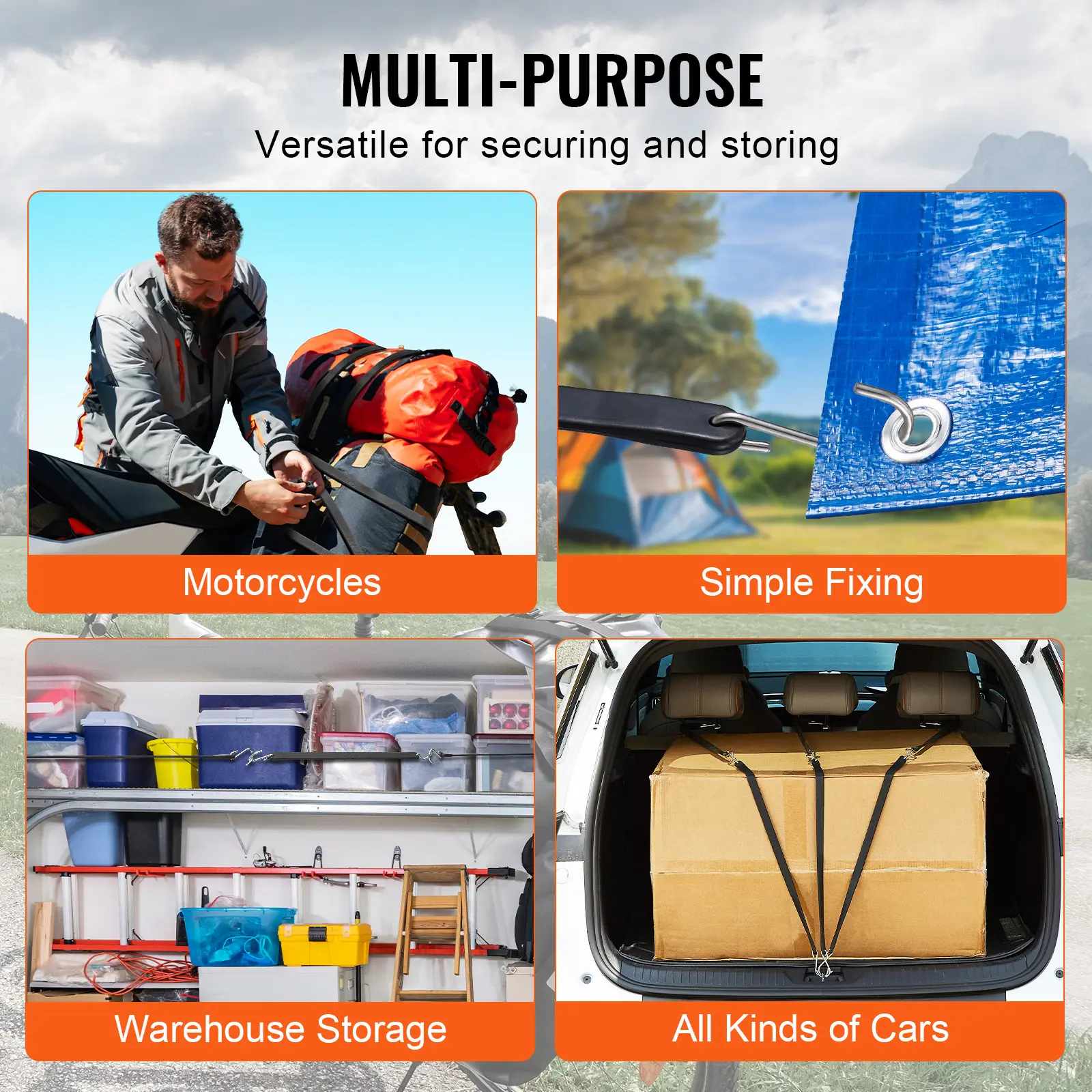 • Versatility: Suitable for home organization, outdoor adventures, or logistics, these bungee straps easily handle any task, fulfilling a wide range of needs for securing or storing items.
