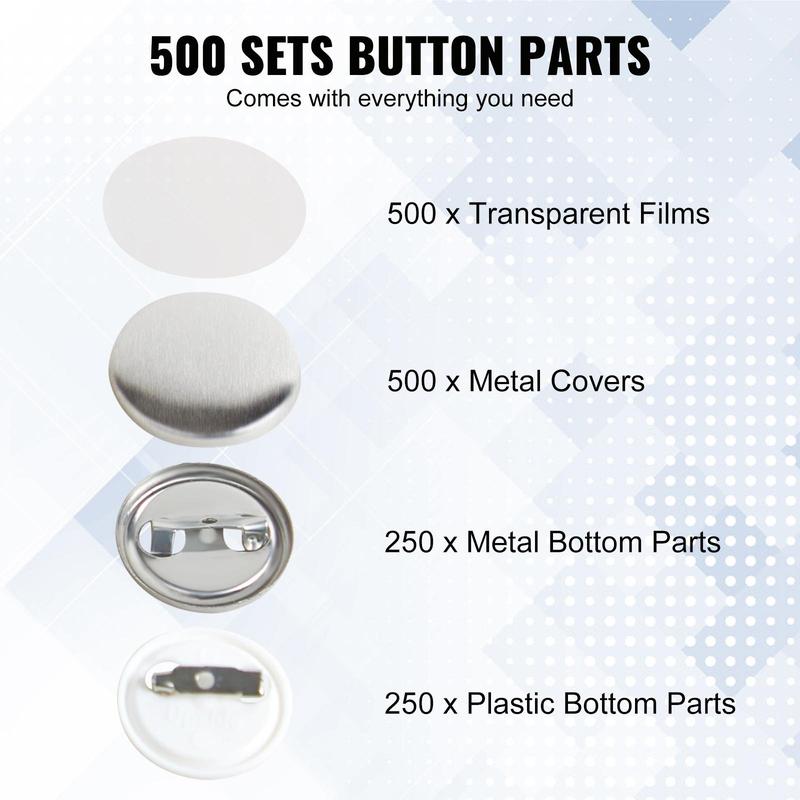 • All Set for Crafting: You will get 500 sets of pinback button parts to make 500 pretty button badges, including 500 pcs transparent films, 500 pcs metal covers, 250 pcs metal bottom parts, and 250 pcs plastic bottom parts. The number of all parts is the same. In addition, different metal and plastic bottom parts can satisfy your different needs.
