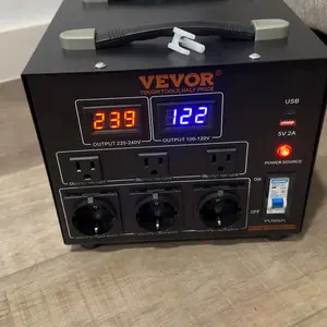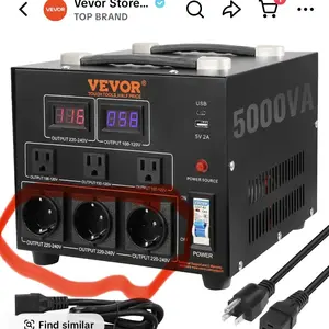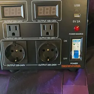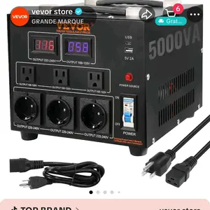 • 5000W Voltage Converter Transformer: This step up down transformer features 6 AC plugs, including 3 US NEMA 5-15R 3-Pin output sockets, 3 European Shucko output sockets, 1 5V USB port, and 1 Type-C jack. It is built with 2 LED displays showing the current output voltage in real-time to avoid transformer overload.