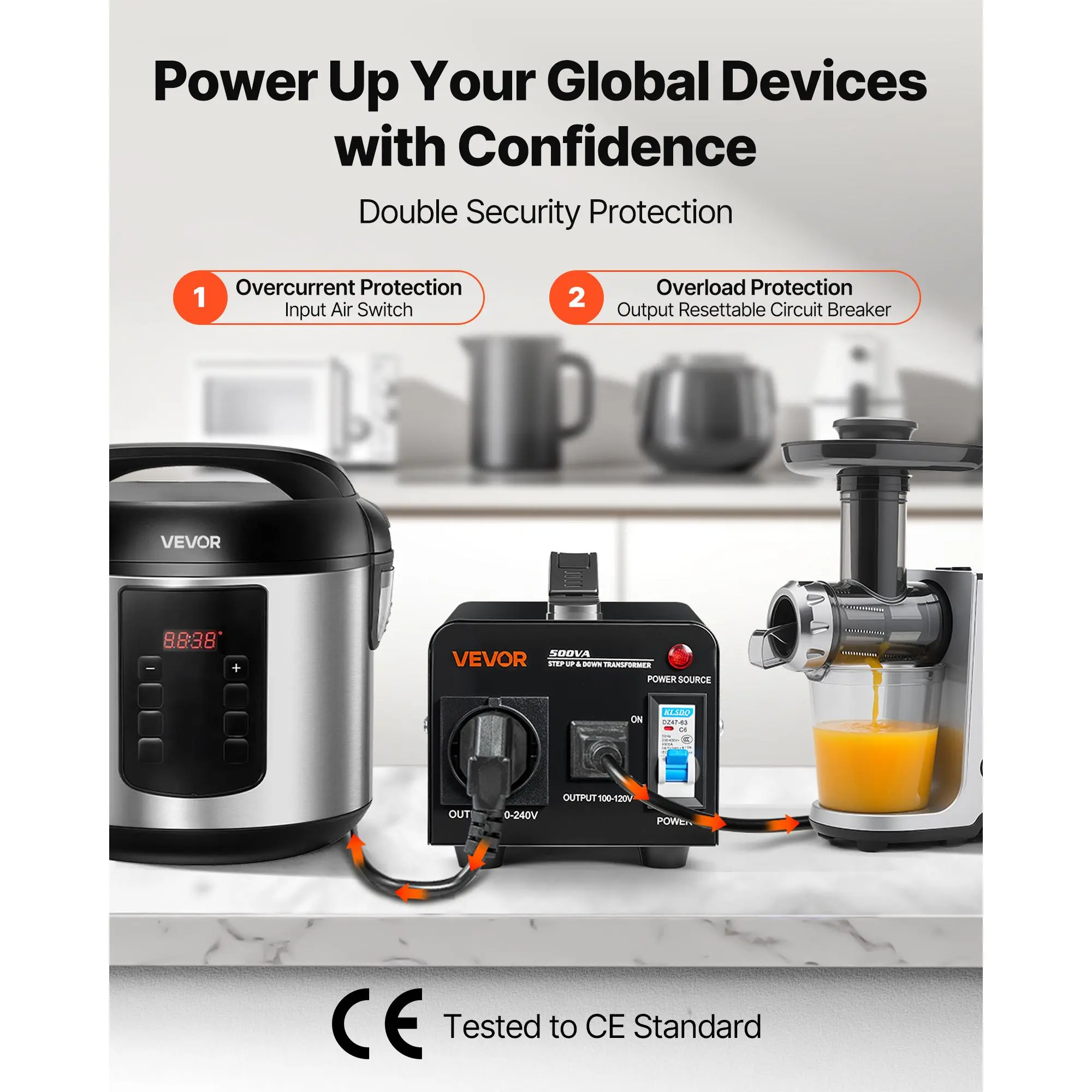 • Security Comes First: This step up down voltage transformer features dual protection: an air switch for overcurrent protection and a resettable circuit breaker for overload protection. Keeps your devices secure during operation