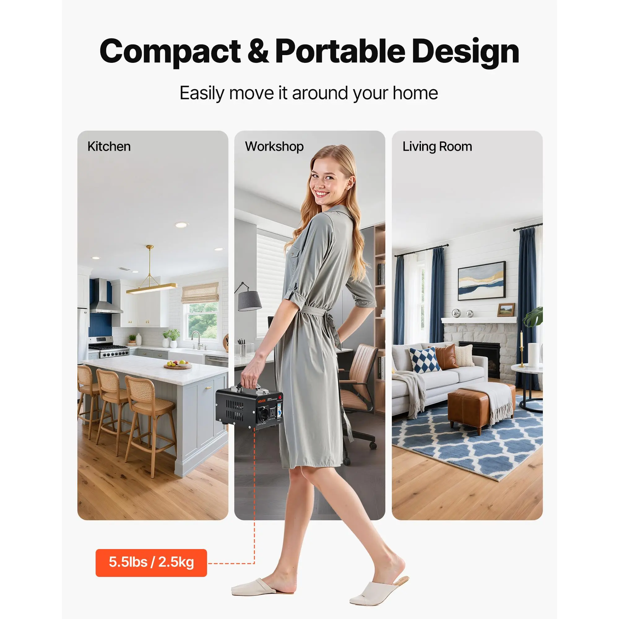 • Compact Size, Big Convenience: The compact body takes up minimal space, while a top handle makes it easy to move around the home or travel with. Whether you're at home or abroad, our step up step down transformer powers your electronics anywhere