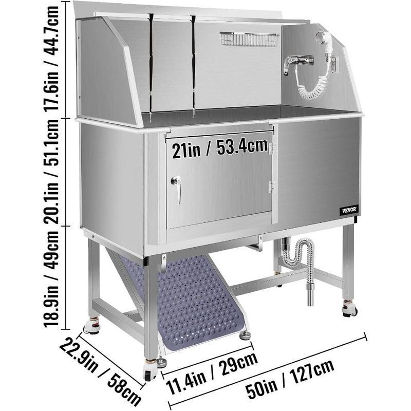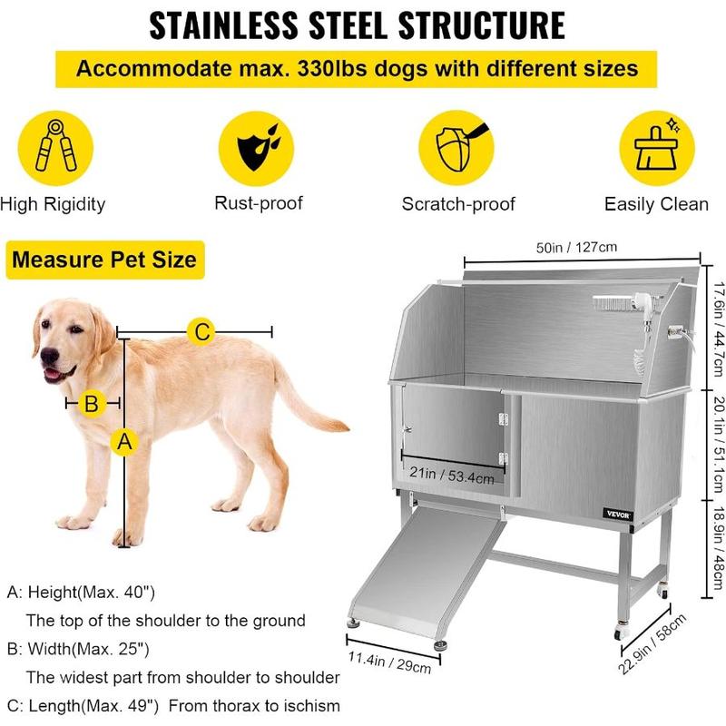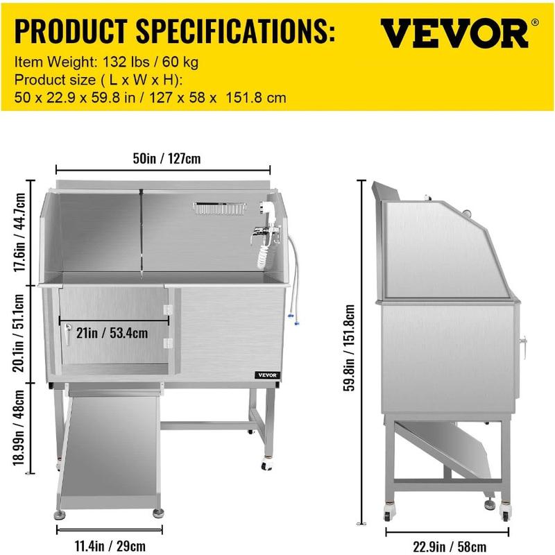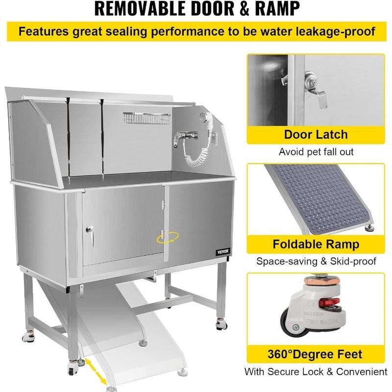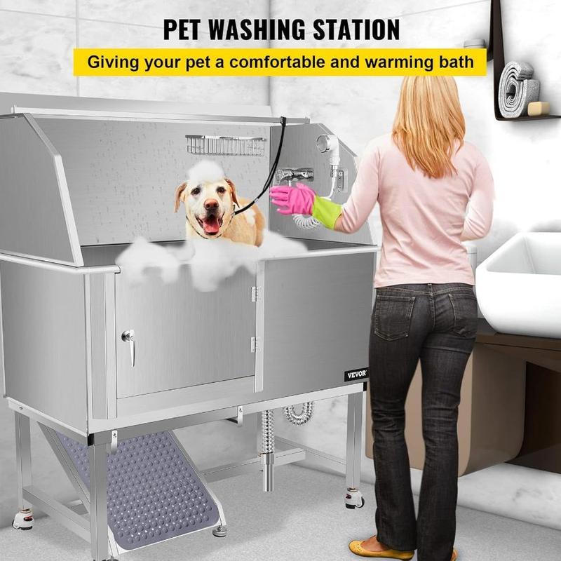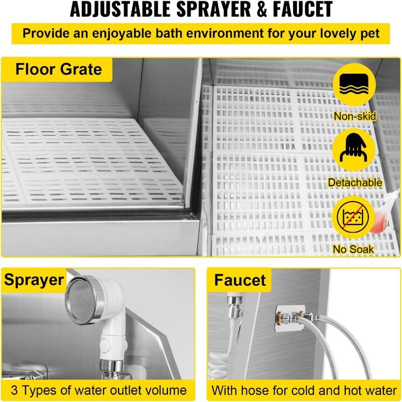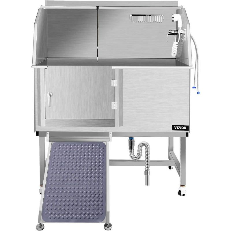 5. VEVOR Dog Grooming Tub, 50 L Pet Wash Station, Professional Stainless Steel Pet Grooming Tub Rated 330LBS Load Capacity, Non - Skid Dog Washing Station Comes with Ramp, Faucet, Sprayer and Drain KitHoliday gifts