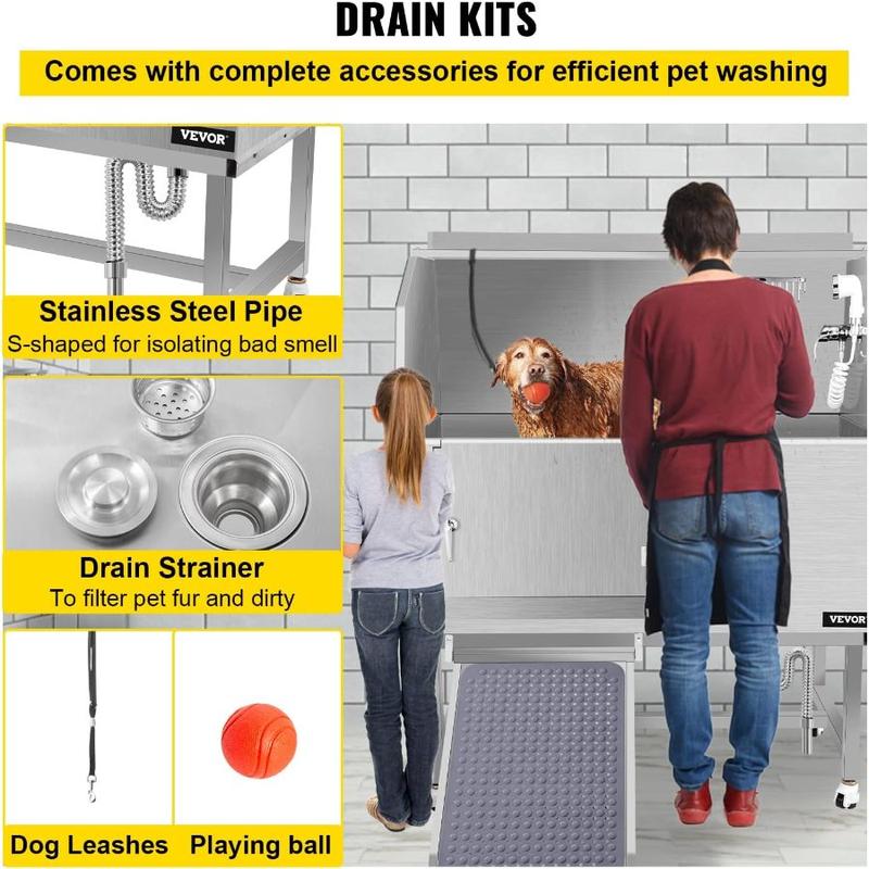 VEVOR Dog Grooming Tub, 50 L Pet Wash Station, Professional Stainless Steel Pet Grooming Tub Rated 330LBS Load Capacity, Non - Skid Dog Washing Station Comes with Ramp, Faucet, Sprayer and Drain KitVEVOR Dog Grooming Tub, 50 L Pet Wash Station, Professional Stainless Steel Pet Grooming Tub Rated 330LBS Load Capacity, Non - Skid Dog Washing Station Comes with Ramp, Faucet, Sprayer and Drain Kit