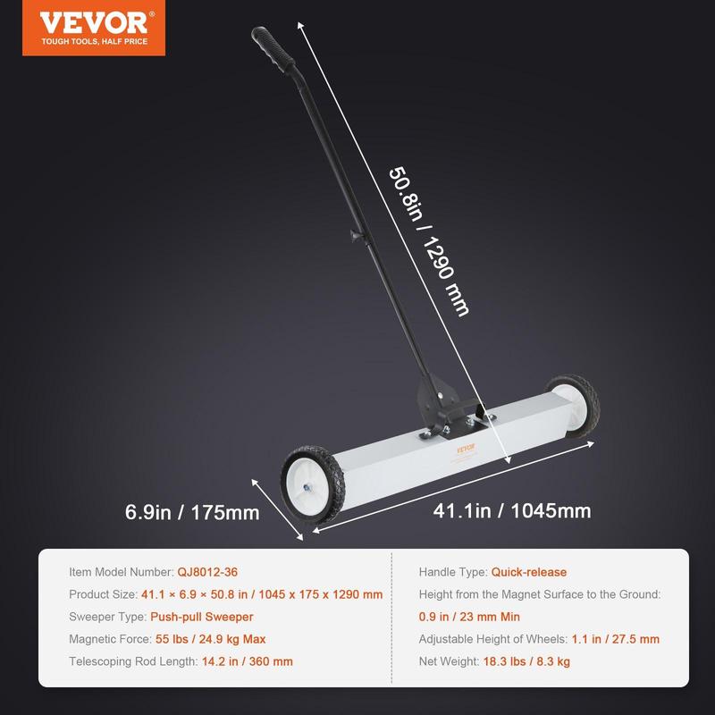 ·Precision Cleaning: The extra-wide magnetic rectangle of the 36-inch sweeper magnet ensures thorough coverage and efficient collection of metal debris. Its superior magnetic strength attracts even small metal particles, leaving the worksite clean and free of potential hazards.