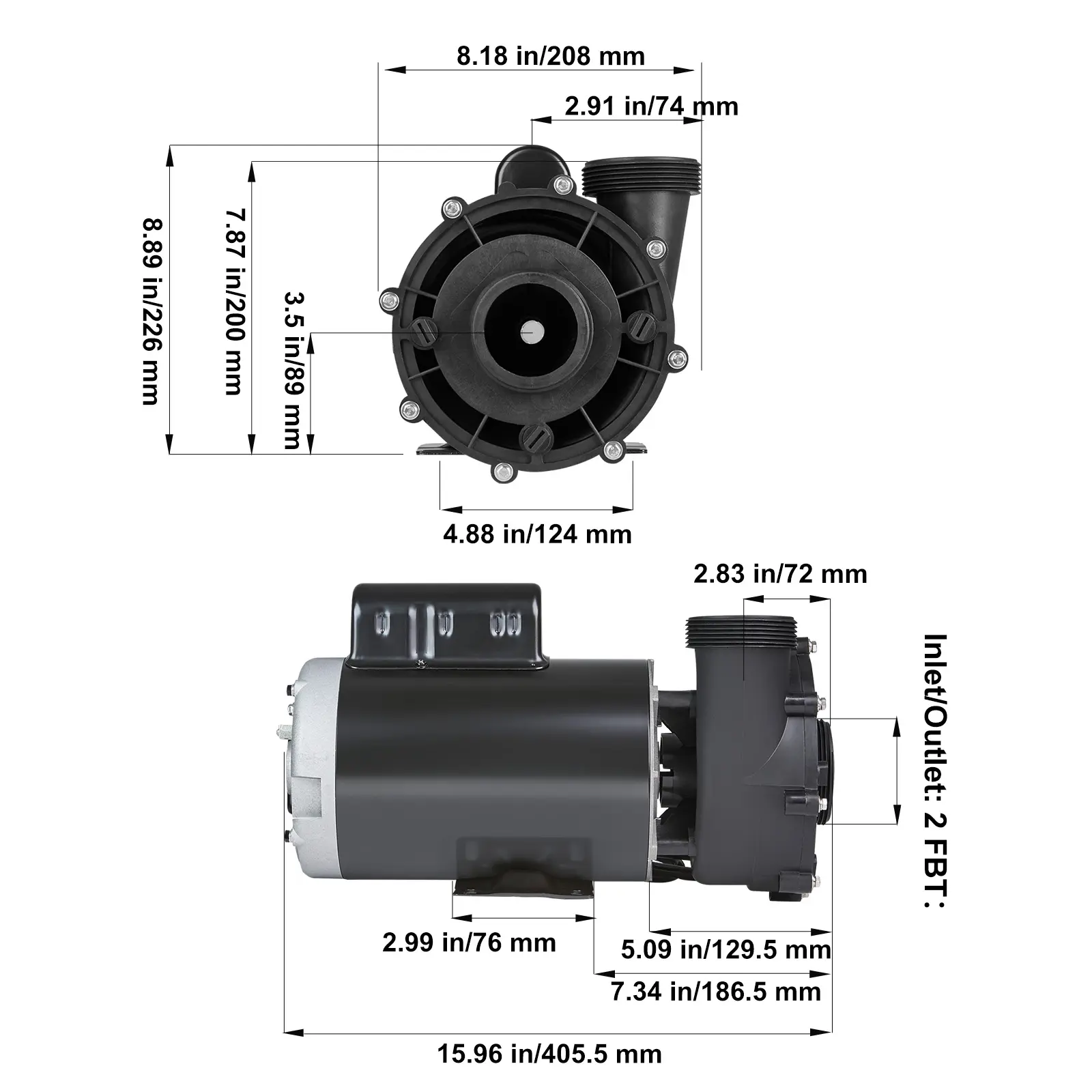 • Mainstream Pump Model: The pump model 56 Frame Motor (AC220-240V 60Hz) is a perfect replacement for the OEM model. We also include two 2 in/5.6 cm connectors to fit a variety of bathtubs. Note that the SPA pump depends on the input power, not the output power. Check the parameters of your old pump before purchasing.