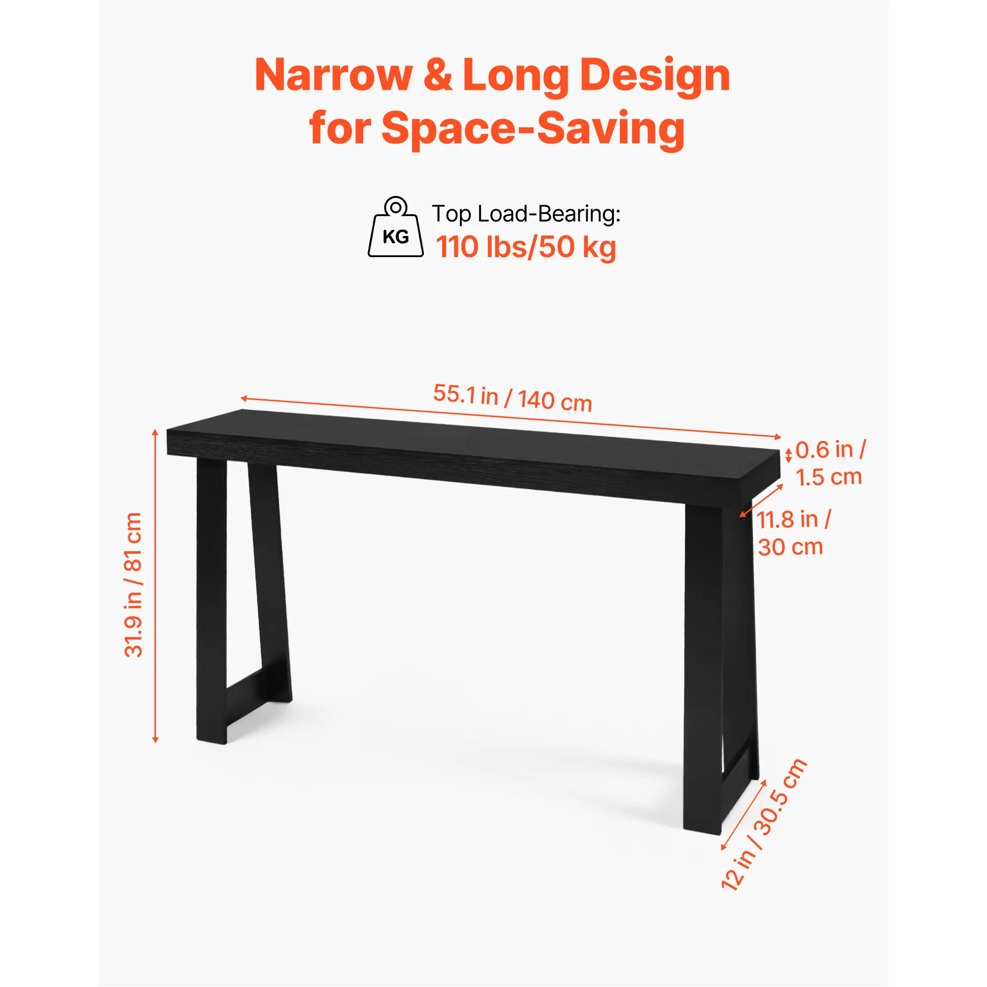 • Maximize Narrow Spaces: Measuring 55.1 x 12 x 31.9 in/140 x 30.5 x 81 cm, this console sofa table fits flexibly behind sofas or in long hallways. Its compact design saves floor space while providing a space to display or store your favorite items