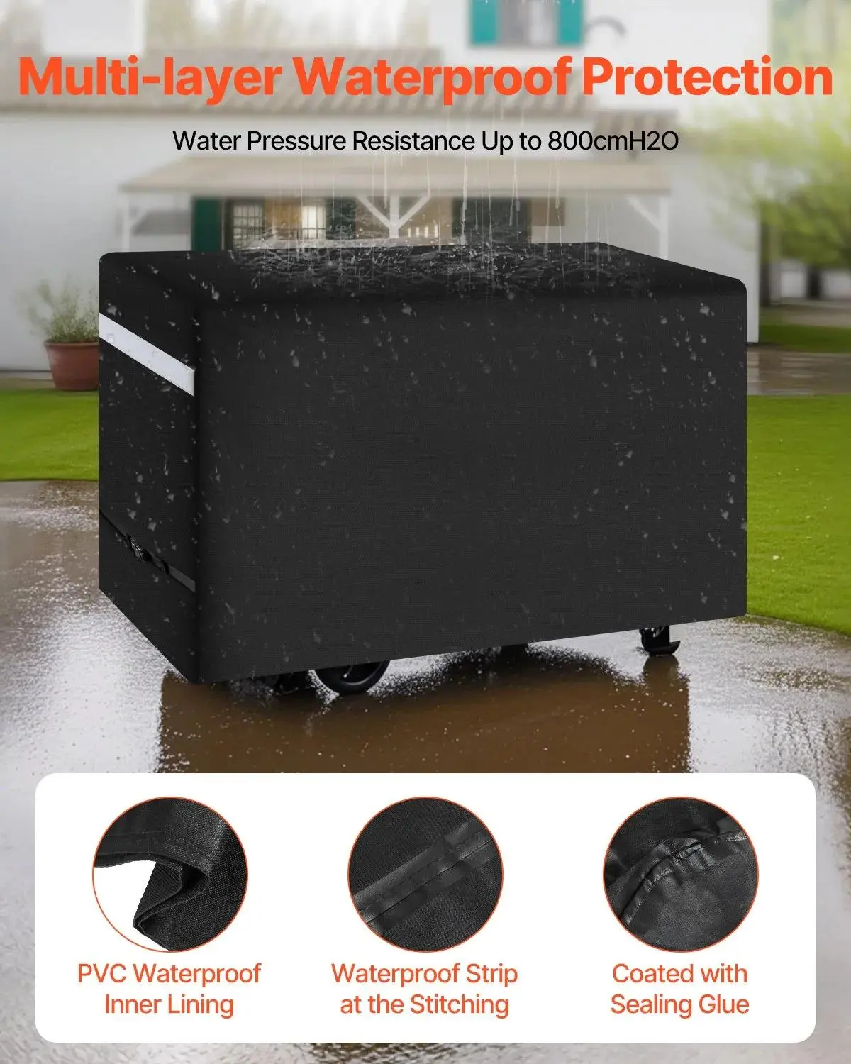 The barbecue cover uses a PVC lining + polyester fiber layer + waterproof layer. All seams are reinforced with waterproof strips and coated with sealing glue. It provides five layers of waterproof guard, with water resistance up to 800cmH2O. It completely blocks rainwater penetration, extending your grill's lifespan.