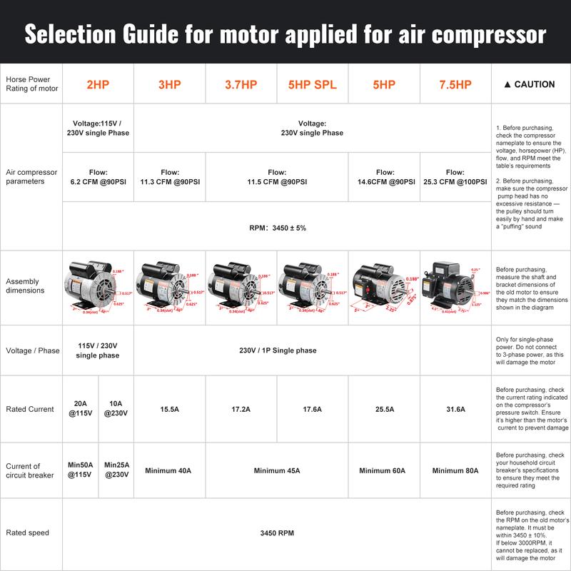 • High Performance: 5HP 3450 RPM, Single Phase, Full Load Amps: 25Amp, 230V 60Hz, SF: 1.0.