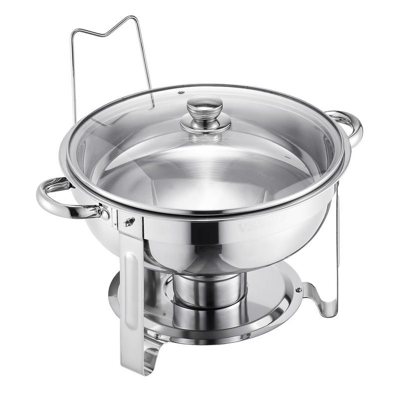 5. VEVOR Chafing Dish Buffet Set, 5 Qt 4 Pack, Stainless Steel Chafer with 4 Full Size Pan, Round Catering Warmer Server with Glass Lid Water Pan Folding Stand Fuel Holder, for Wedding Party Banquet