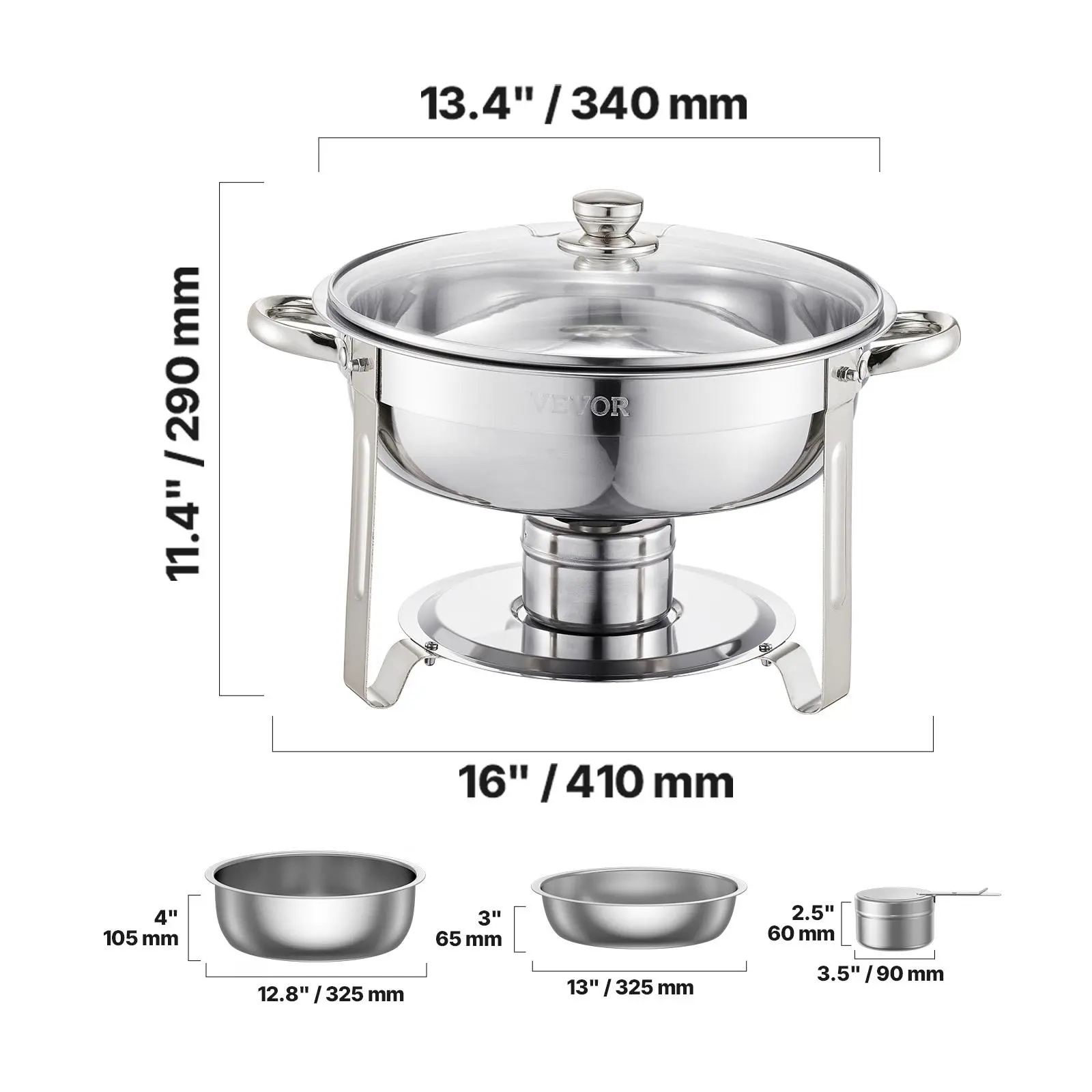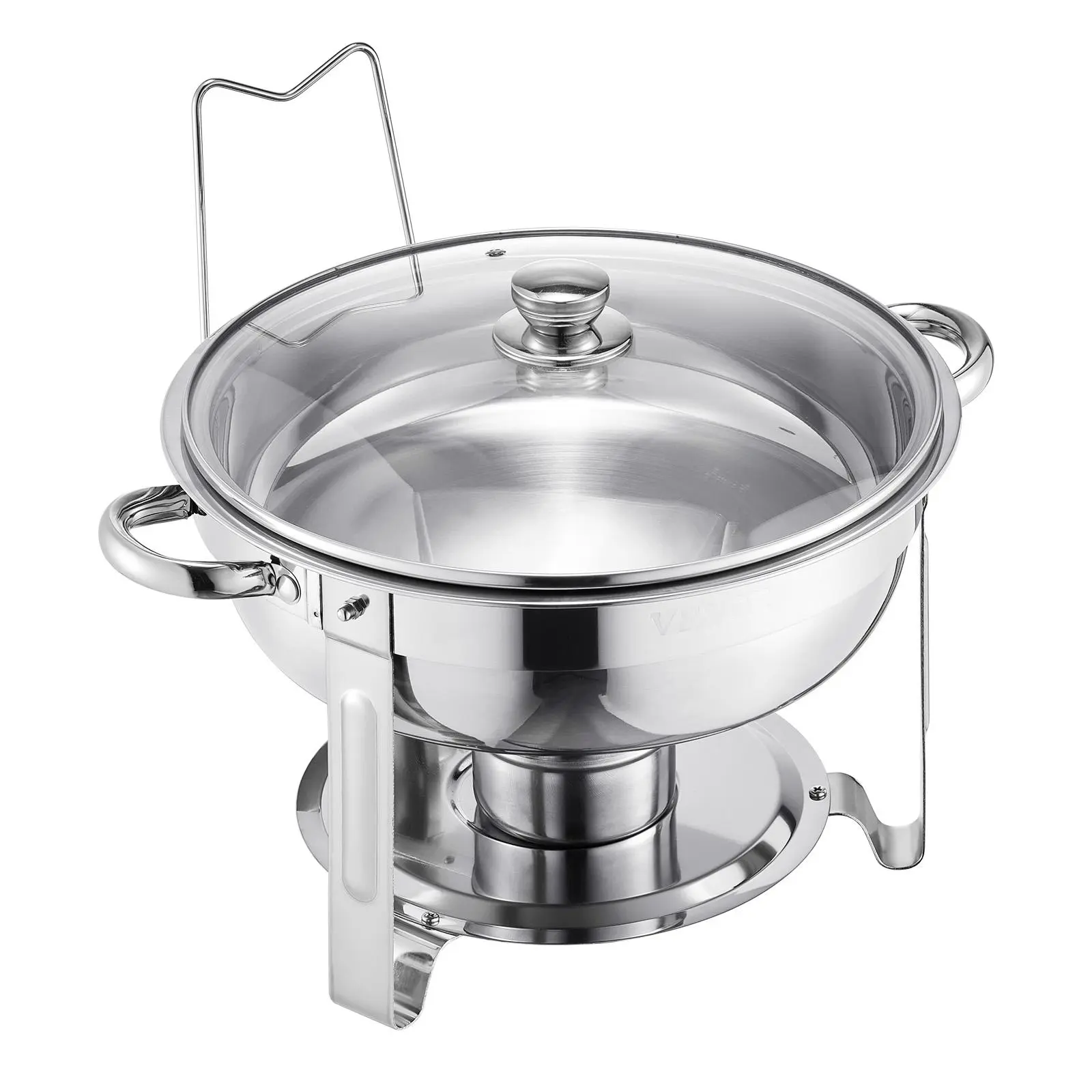 5. VEVOR Chafing Dish Buffet Set, , 5 Qt 4 Pack, Stainless Steel Chafer with 4 Full Size Pan, Round Catering Warmer Server with Glass Lid Water Pan Folding Stand Fuel Holder, for Wedding Party Banquet