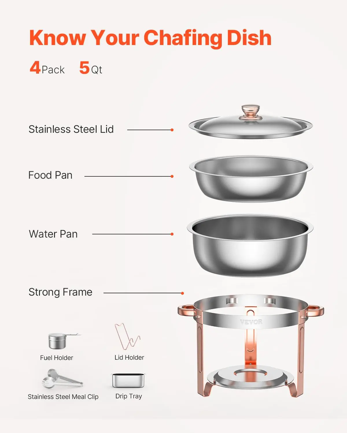 • Ample 5QT Capacity: With a large capacity, this buffet chafer can hold multiple servings of your favorite dishes. The included multifunctional meal clip makes it easy to serve pasta, steak, soup, chicken, and more