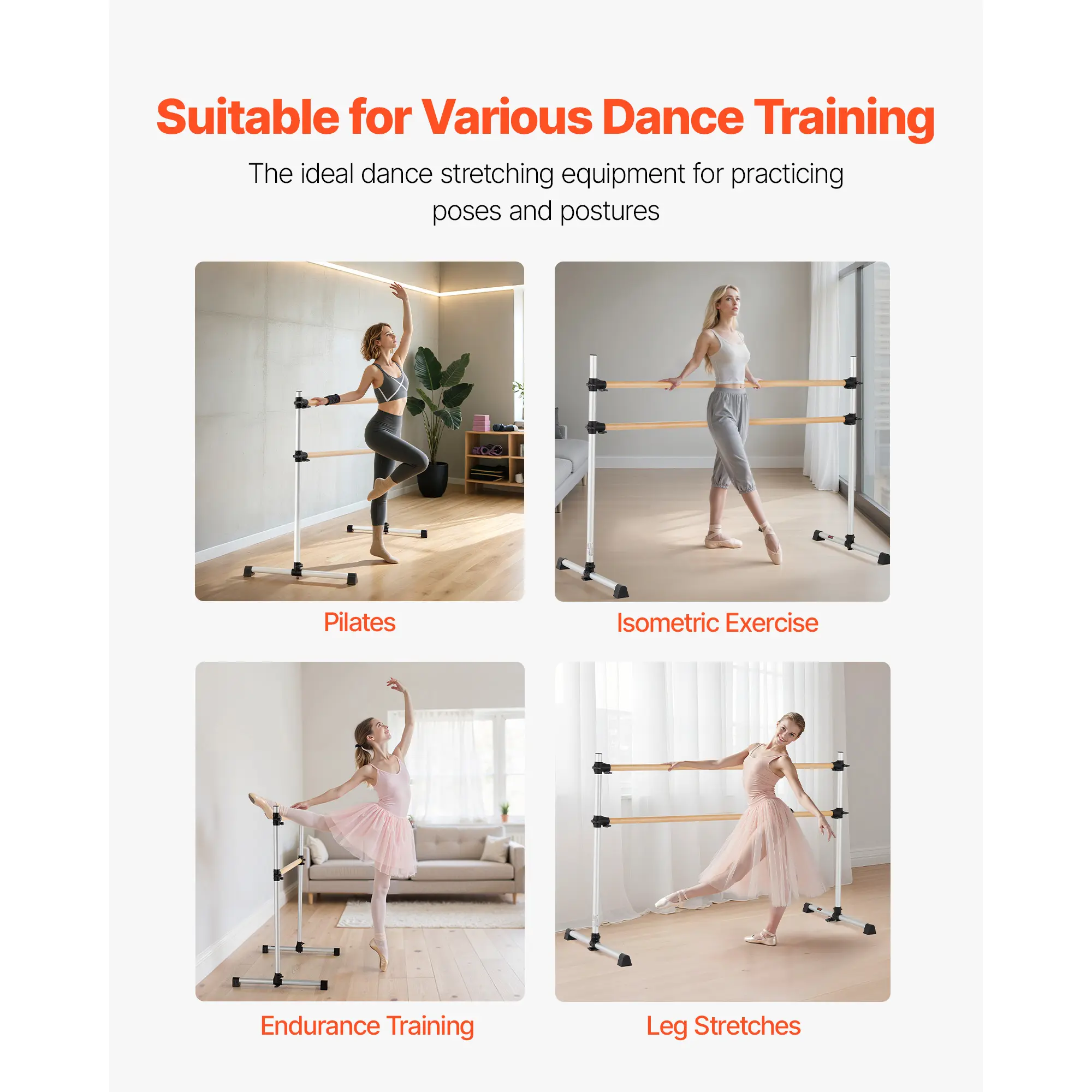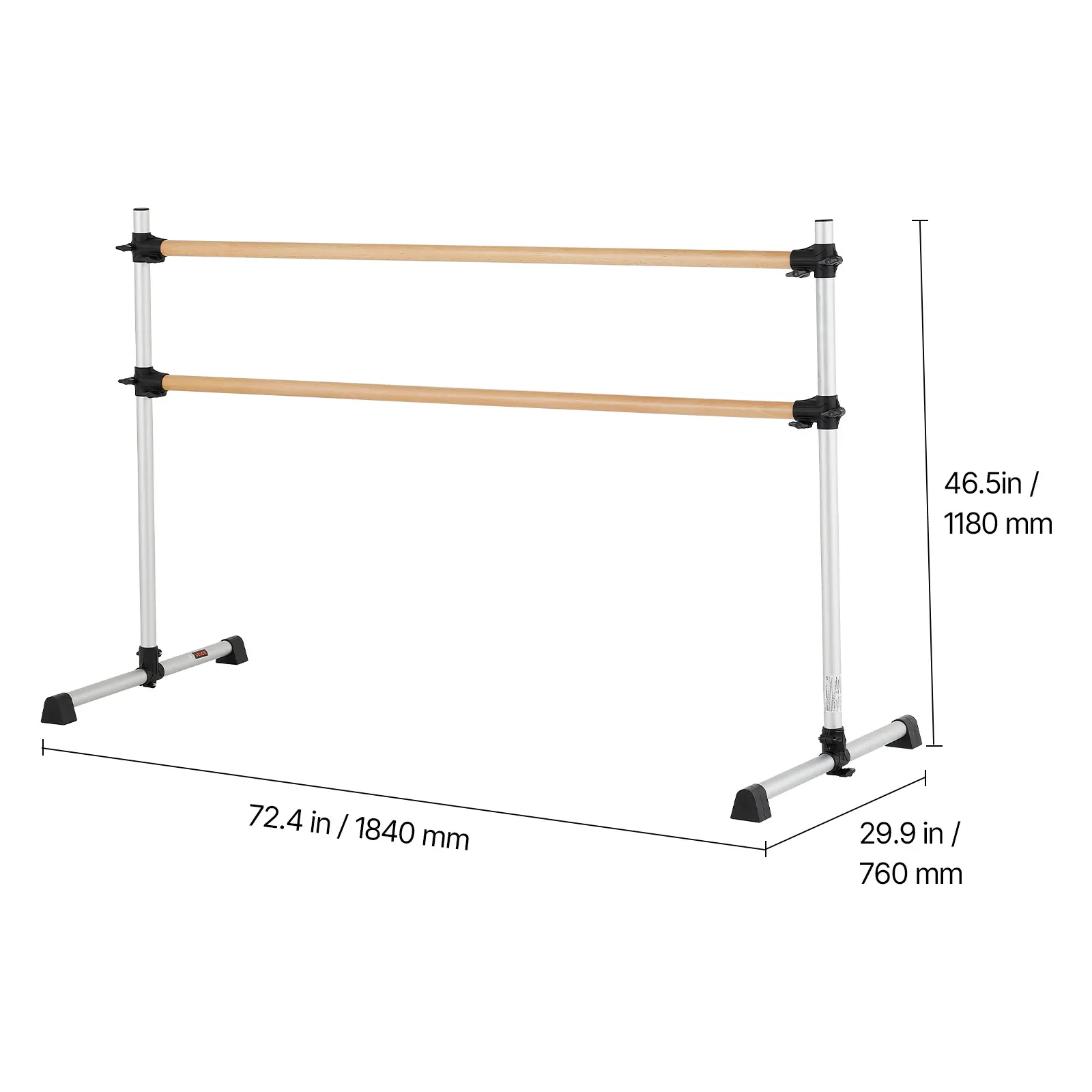 • Stepless Height Adjustment: The portable ballet barre comes with two 6-foot-long wooden bars, with adjustable height from bottom to top. The adjustable range is 6.7–46 in / 170–1165 mm, adjustable with a simple turn of the knob to meet your needs