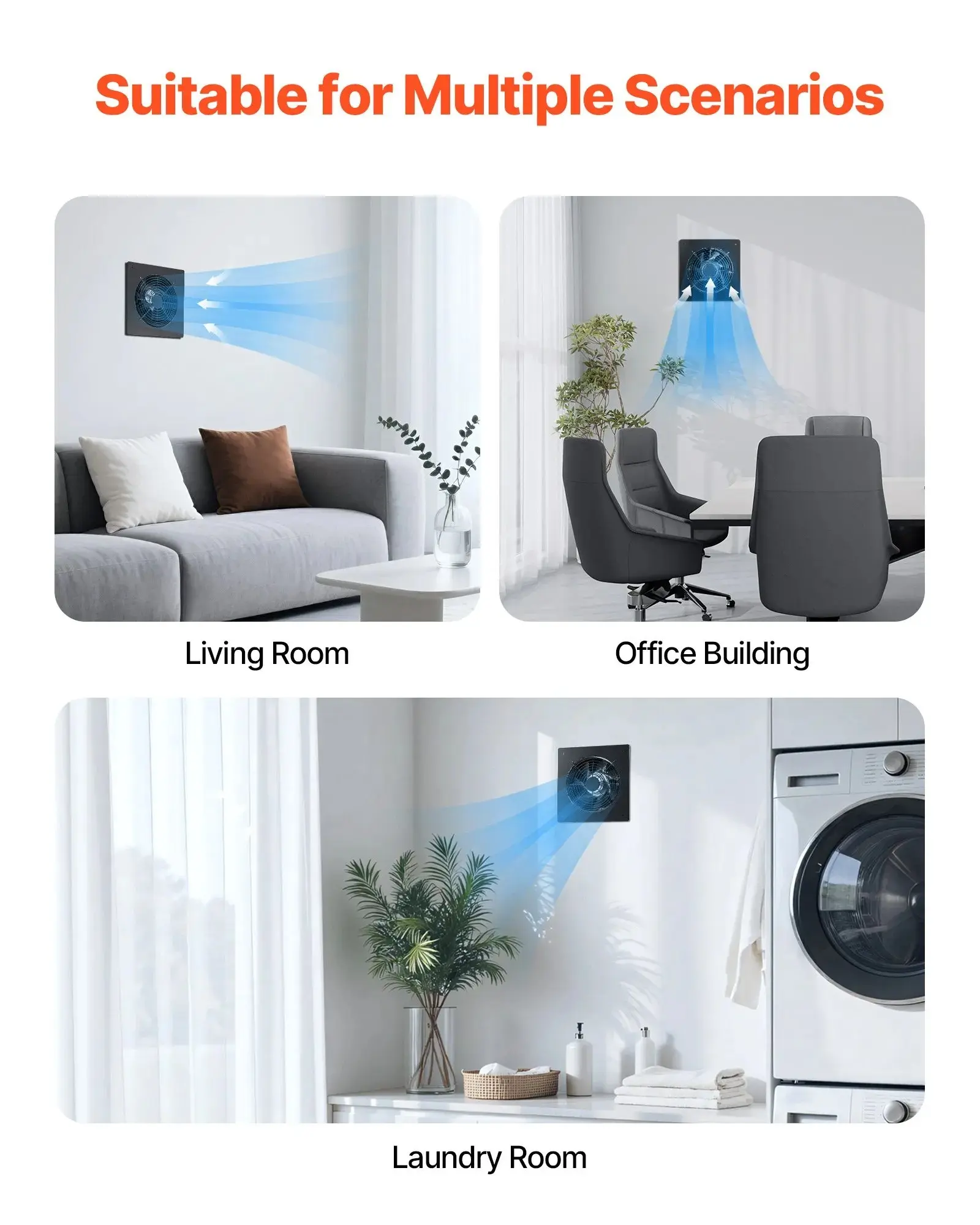 ·Versatile Use: This through wall fan is suitable for installation in areas requiring ventilation, such as the living room, bedroom, study, and more. To prolong the lifespan, it is recommended to avoid outdoor use and minimize exposure to rain