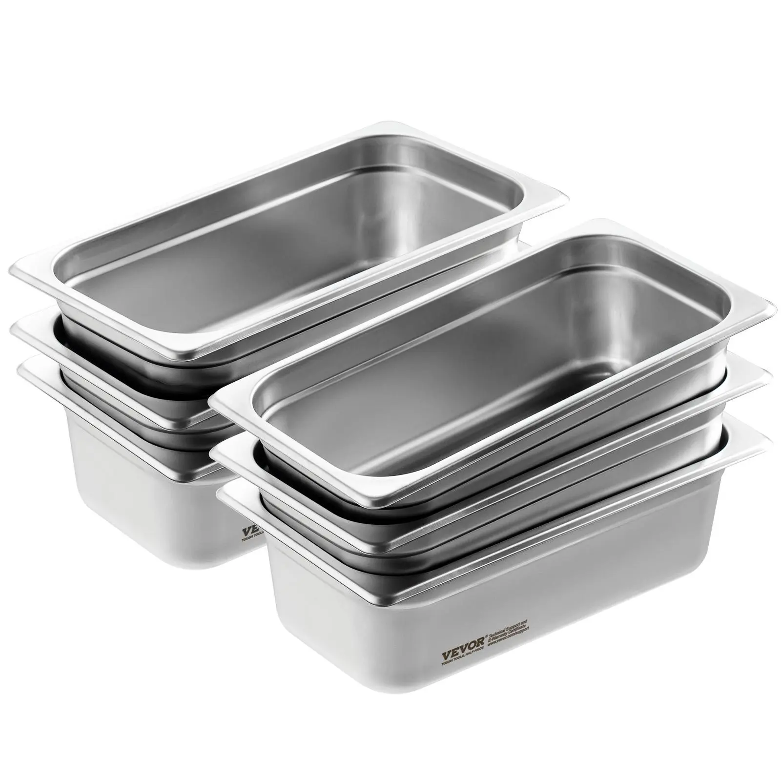 • 1/3-Size Steam Table Pan: 6 pack of 1/3-size steam table pans with lids, made from food-grade SUS201 stainless steel. You can use these pans to hold various meats, vegetables, fruits, ice cream, and any other foods. The lids help protect the food from contamination.