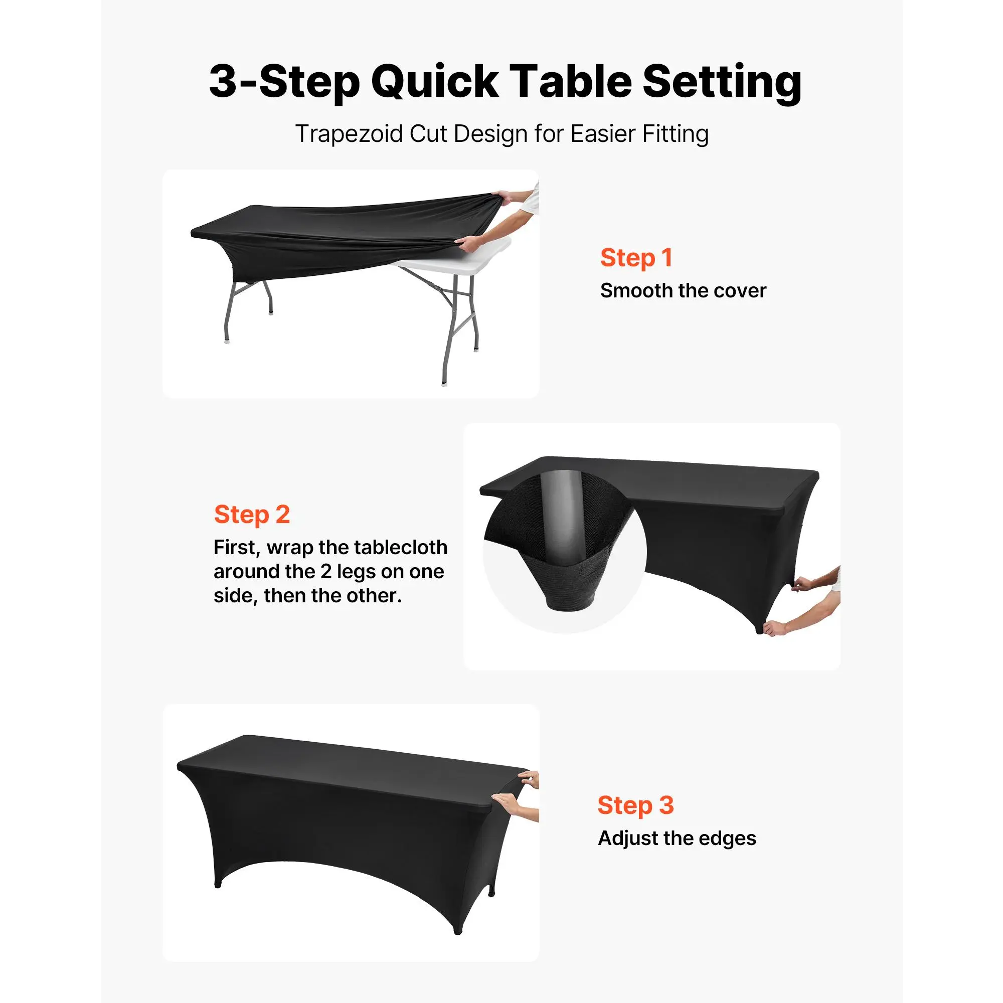 5. VEVOR 6 Pack Table Cloth for 8FT Rectangular Fitted Events, Wrinkle-Resistant Stretch Black Table Covers, Washable Spandex Tablecloth Protector, for Party, Wedding, Cocktail, Banquet, Festival