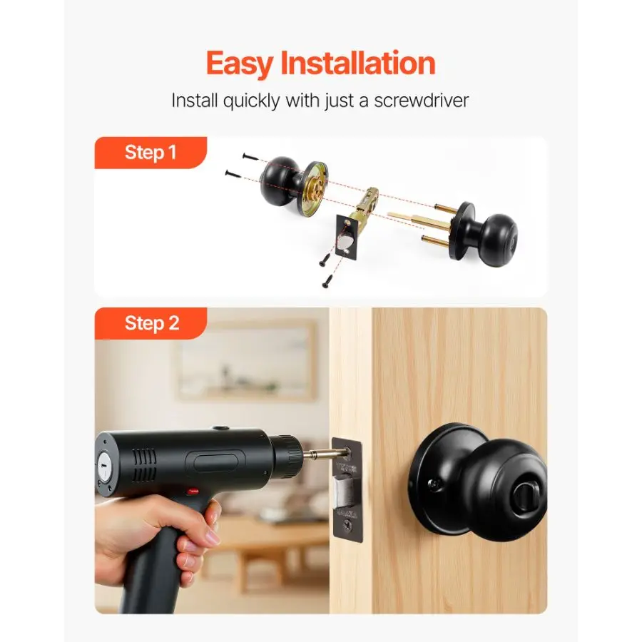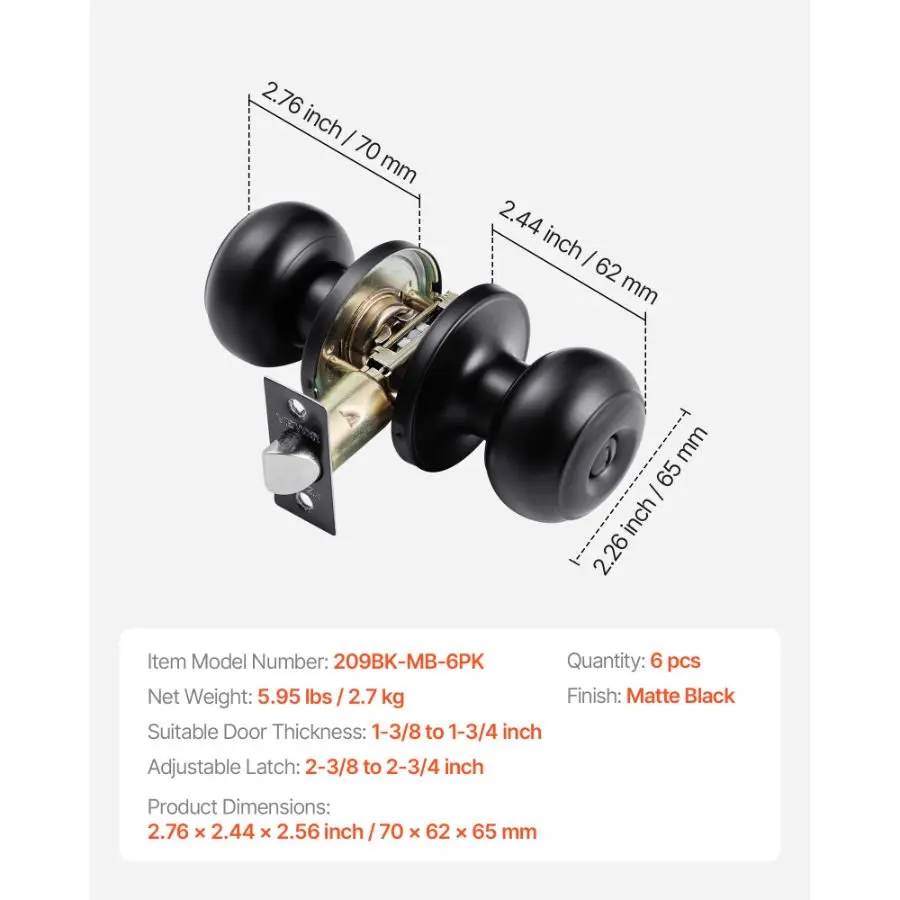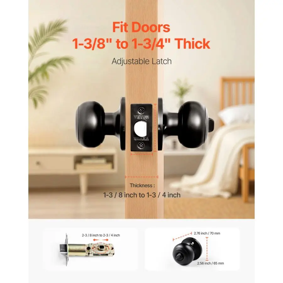 VEVOR 6 Pack Black Door Knobs, Privacy Door Knob with Round Ball, Keyless Exterior Thumb Turn Lock Interior, All Metal Doorknobs Hardware, Matte Black Modern Design for Bedroom BathroomVEVOR 6 Pack Black Door Knobs, Privacy Door Knob with Round Ball, Keyless Exterior & Thumb Turn Lock Interior, All Metal Doorknobs Hardware, Matte Black Modern Design for Bedroom & Bathroom