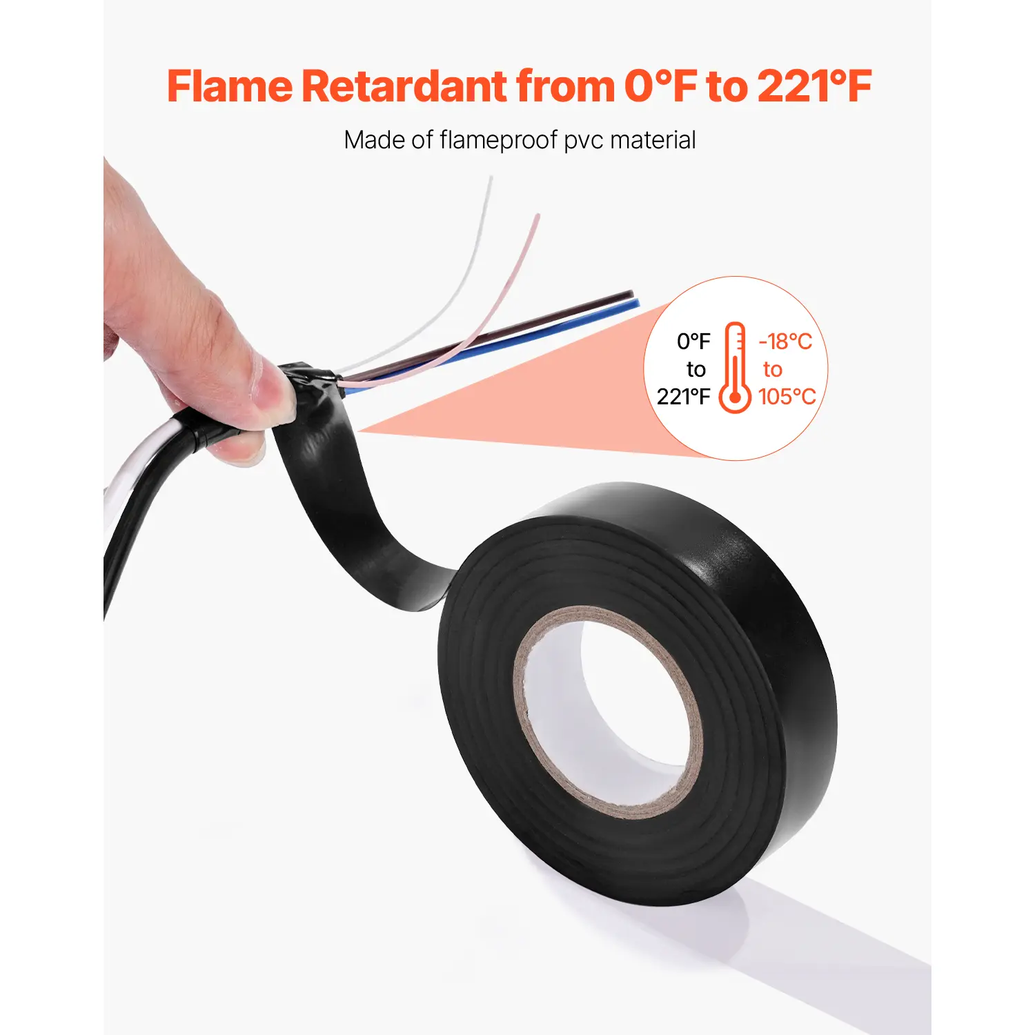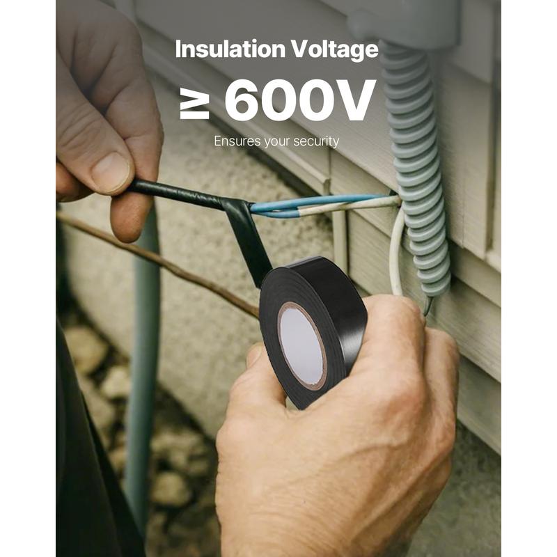 • Durable Flame-Retardant: The black electrical tape withstands insulation voltage of ≥ 600V and operates in temperatures from 0℉ to 221℉ (-18℃ to 105℃). Designed for durability, it helps reduce the risk of electrical leakage and fire hazards
