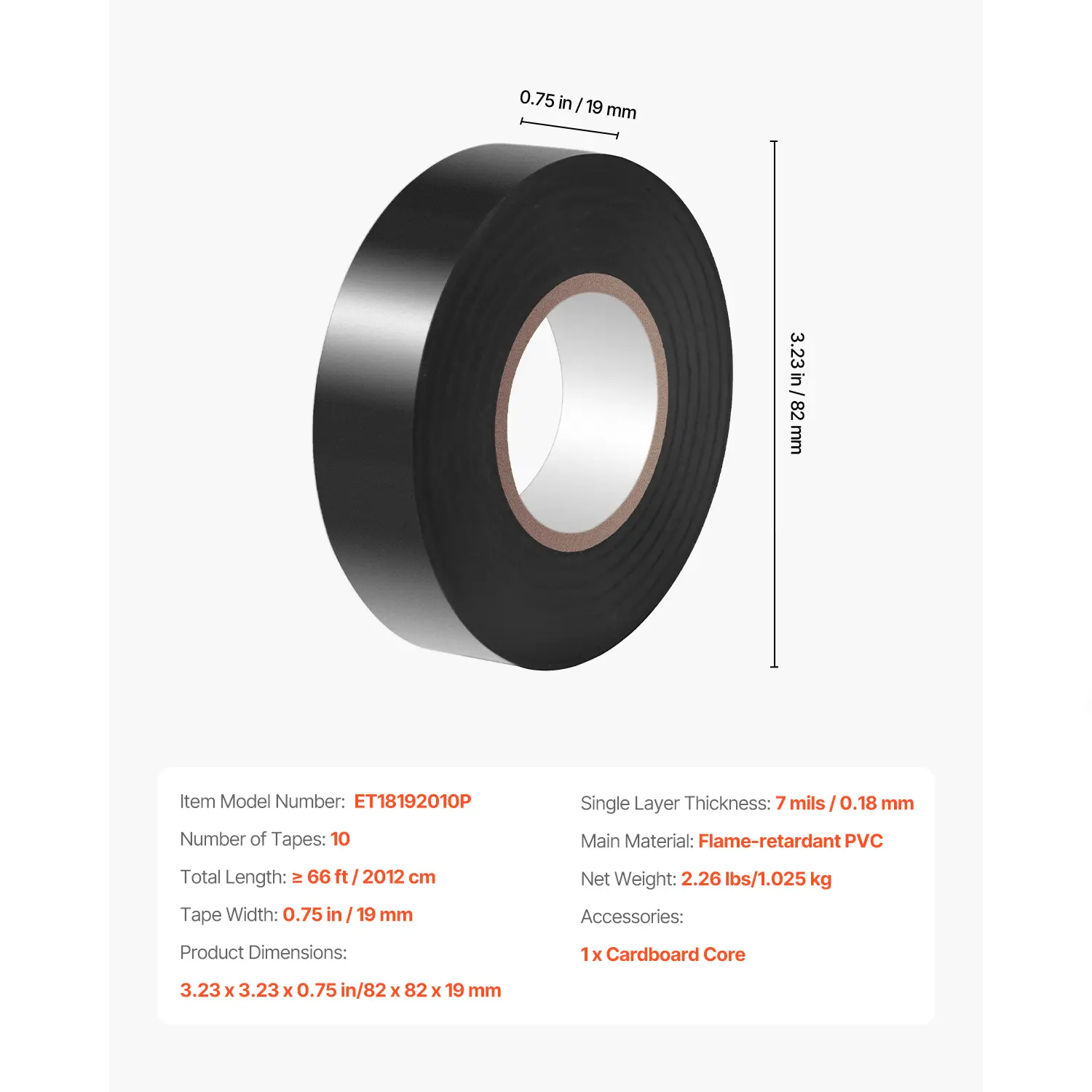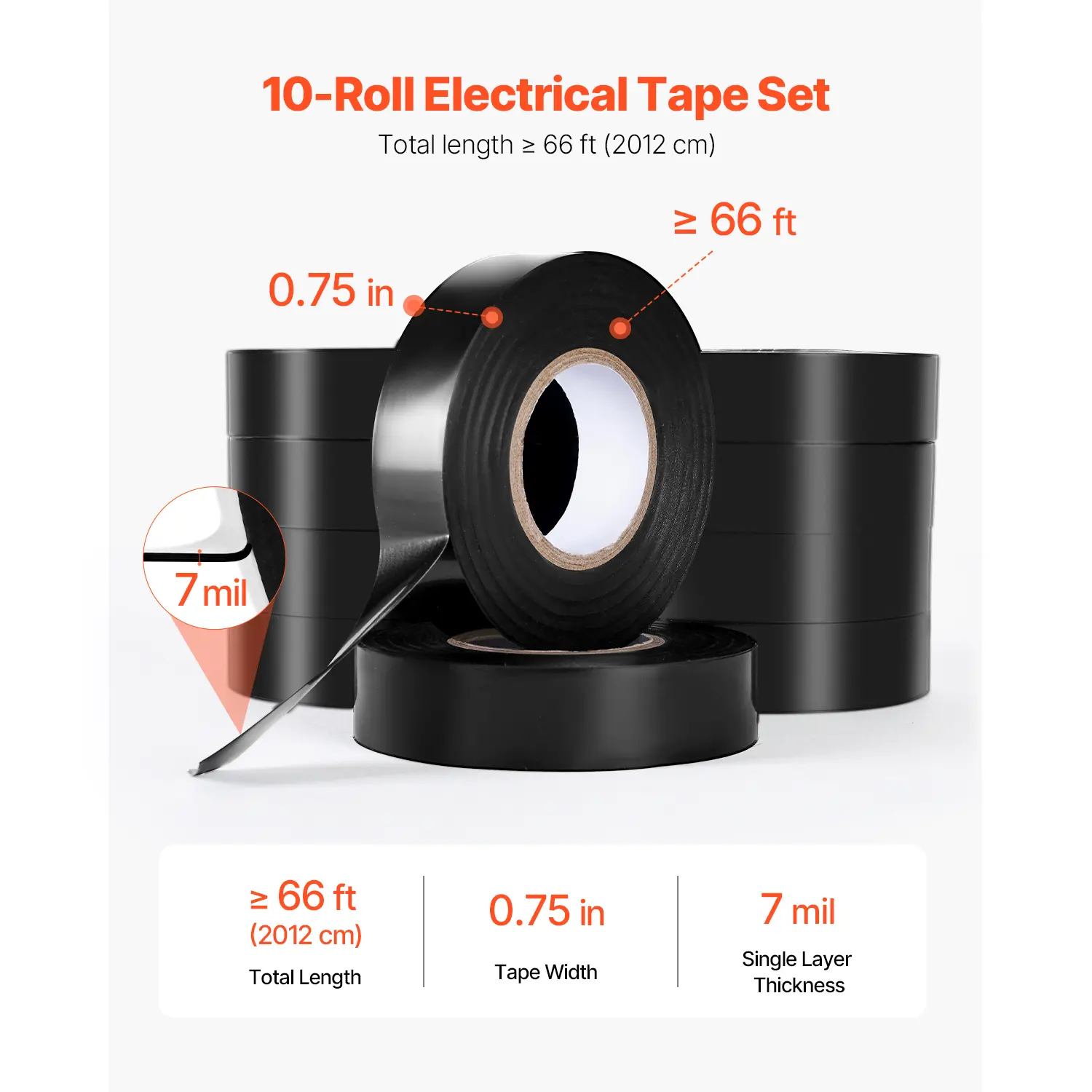 • What You’ ll Get: This electrical tape for wire set includes a complete 10-roll of black insulating tape, each with a total length of ≥ 66 ft (2012 cm). It is built to handle multiple tasks, from home repairs to electrical projects