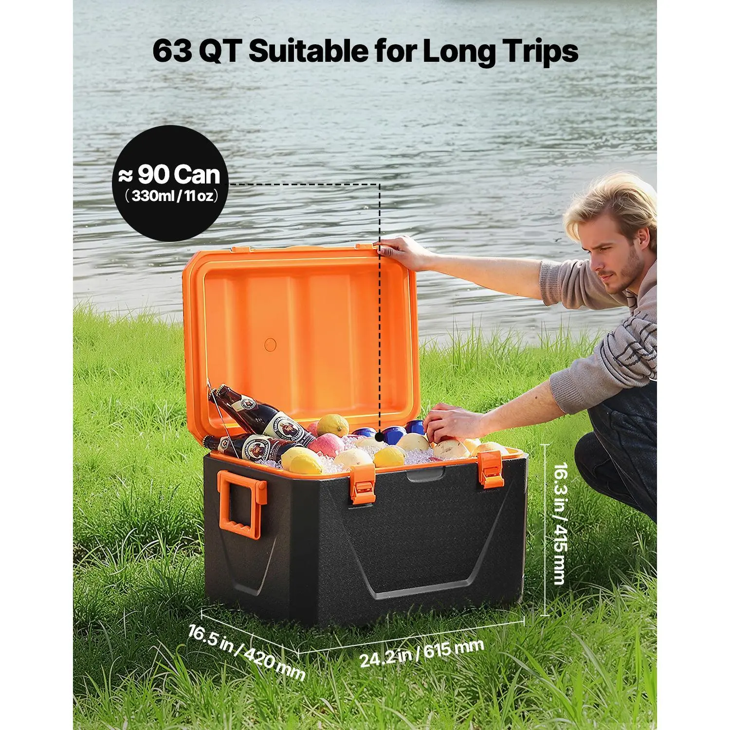 • 63QT Large Capacity: This portable cooler provides a 63QT capacity, holding up to 90 cans (330ml / 11 oz), ideal for long trips, family picnics, and more.