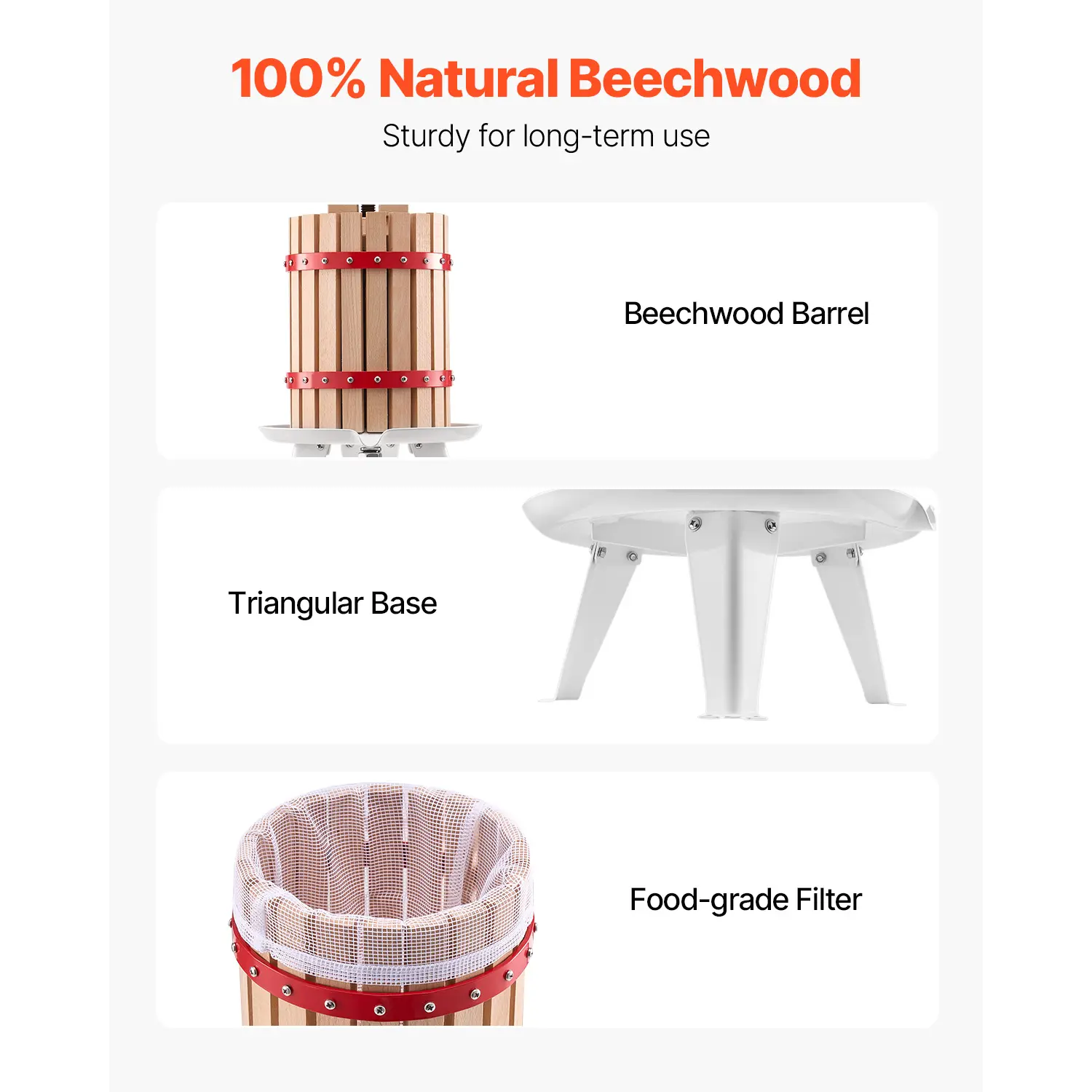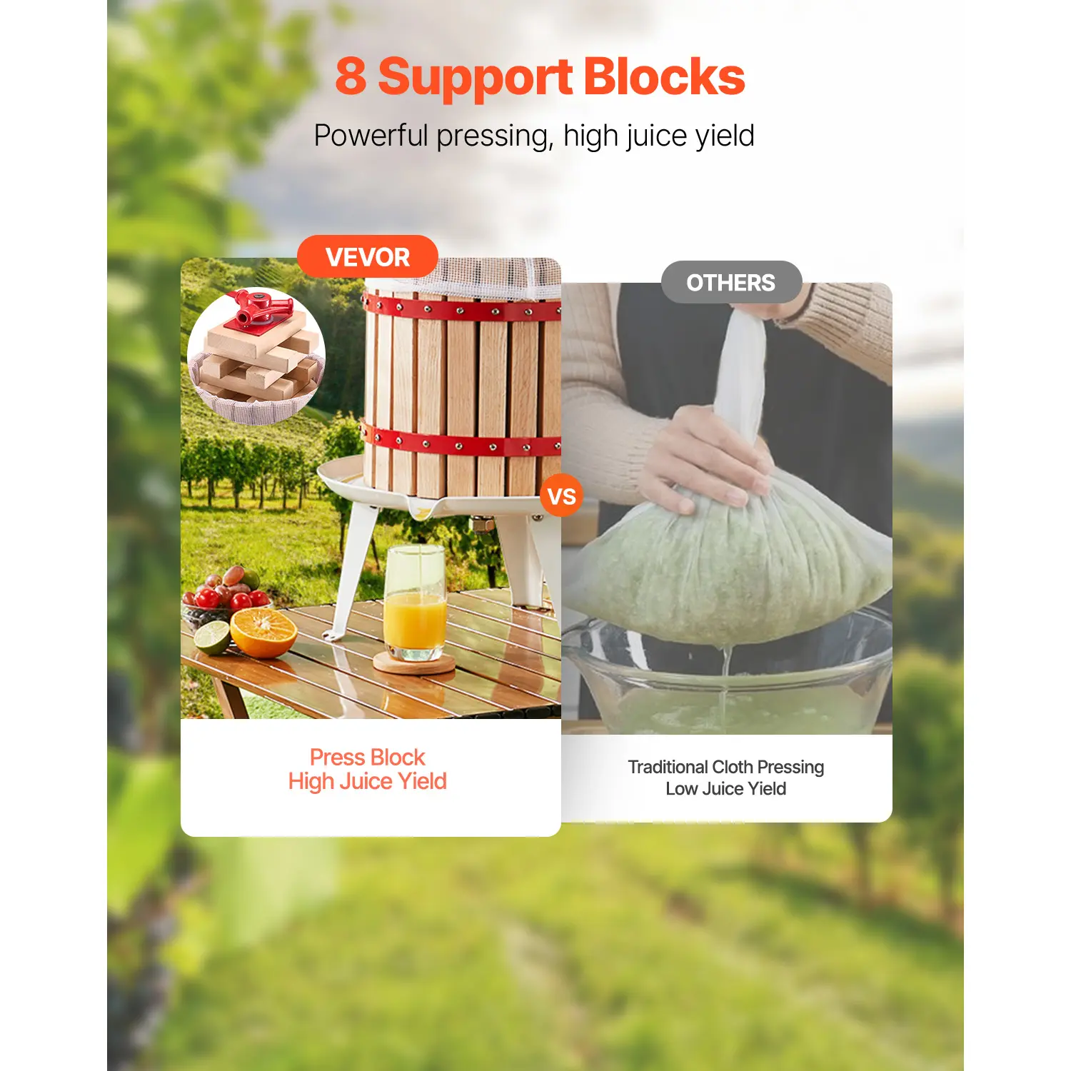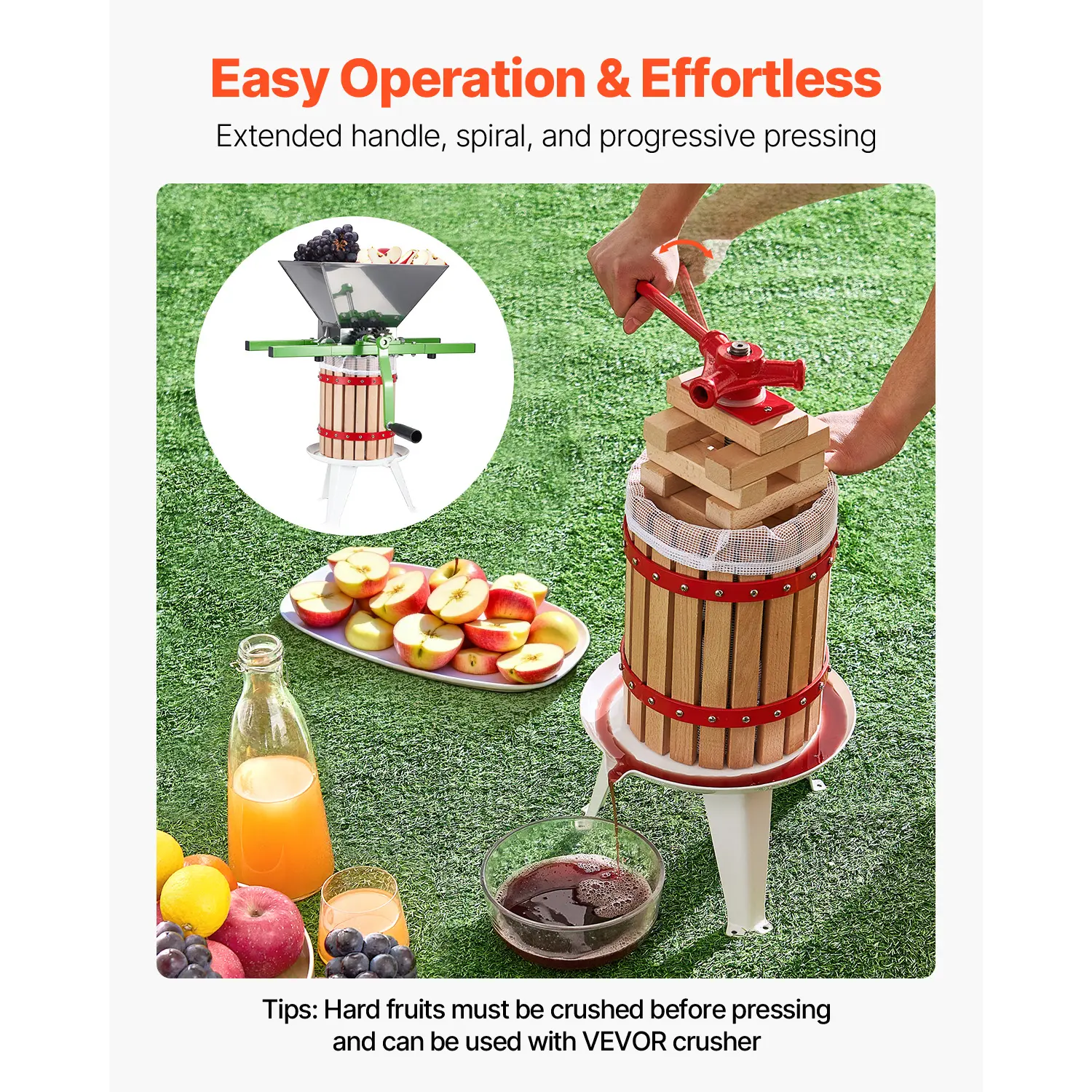 • Large Capacity: The 6L/1.6-gallon large-capacity design is ideal for family gatherings, parties, wineries, and farms to conveniently produce abundant juice. The hard fruits must be crushed before pressing, and can be used with VEVOR crusher