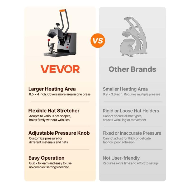5. VEVOR Heat Press 6x3.75Inch Curved Element Hat Press Clamshell Design Heat Press for Hats Rigid Steel Frame No Stick Digital LCD Timer and Temperature Control (6x3.75Inch Clamshell Design)