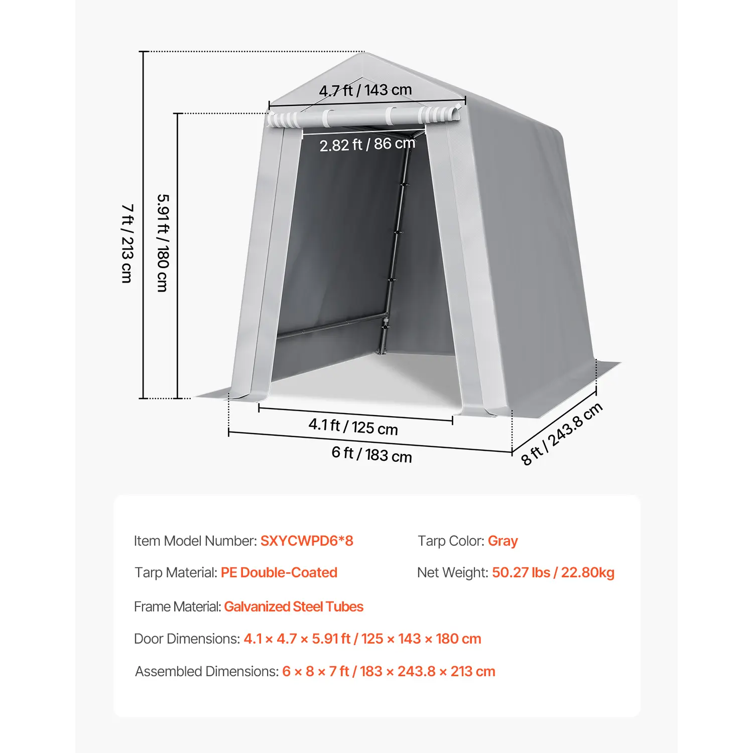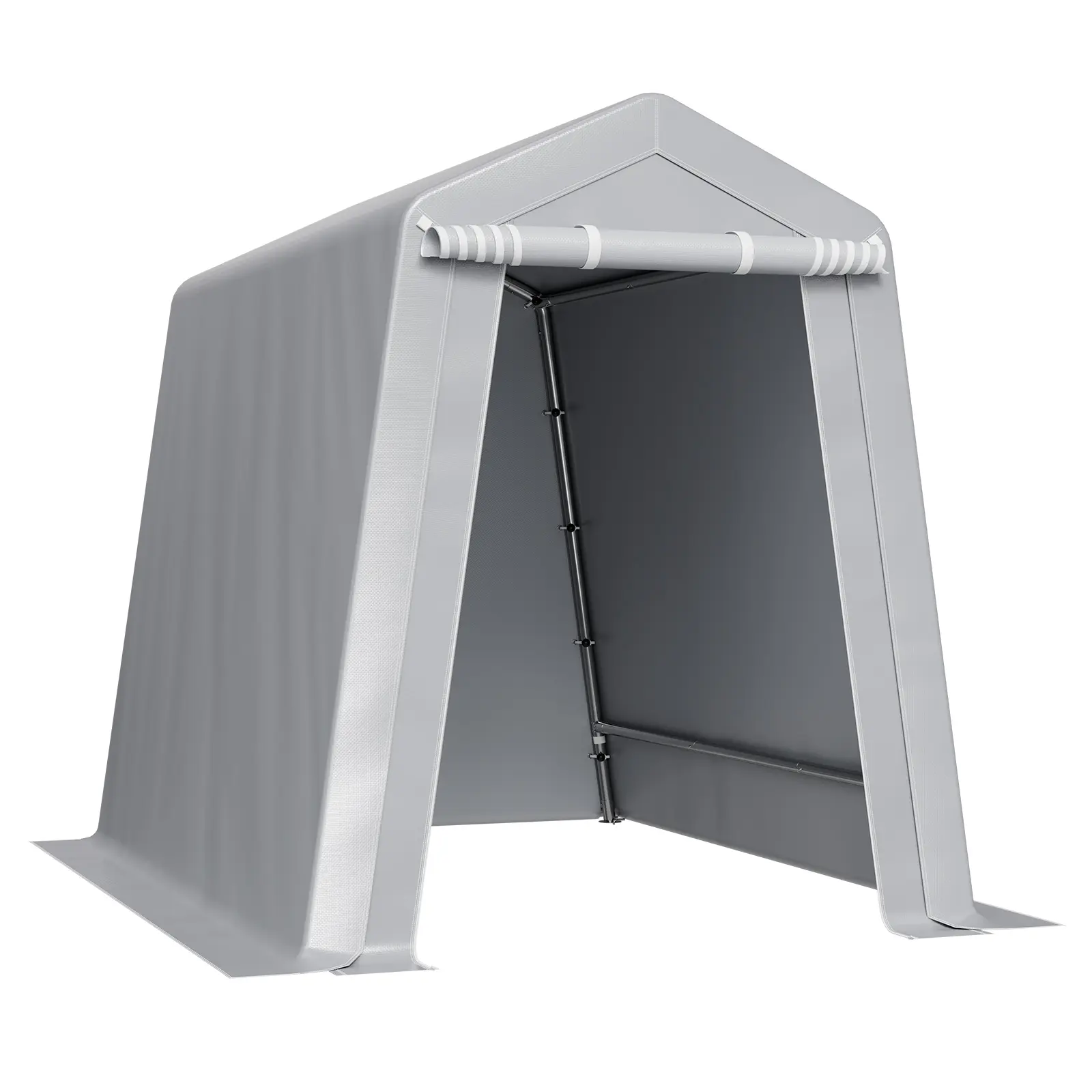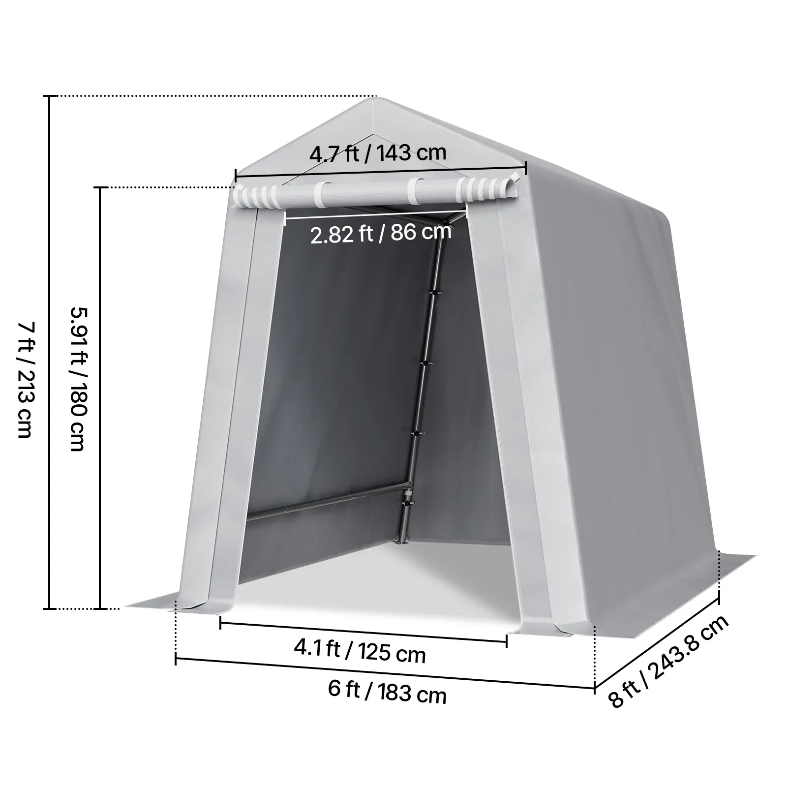 • PE Double-Sided Coated Canopy: The outdoor storage shelter comes with a gray cover that is made from double-layer coated PE material, offering tear resistance, fade resistance, rain and snow protection, wind and dust resistance, and UV protection. The bottom extends 5.91 inches (15 cm) to the ground, improving stability and protecting your equipment from harsh weather.