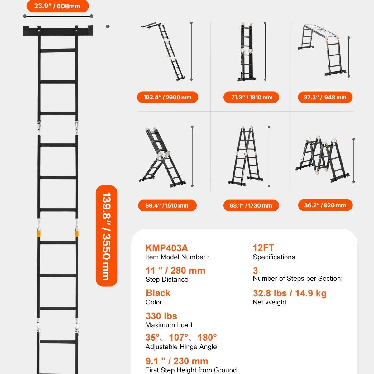 • Lightweight & Easy to Store: Weighing only 32.2 lbs, this ladder is easy to carry and move. Once fully folded, it is just 60.2 '' tall, making it easy to store in any corner and save space.