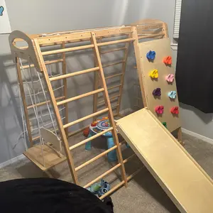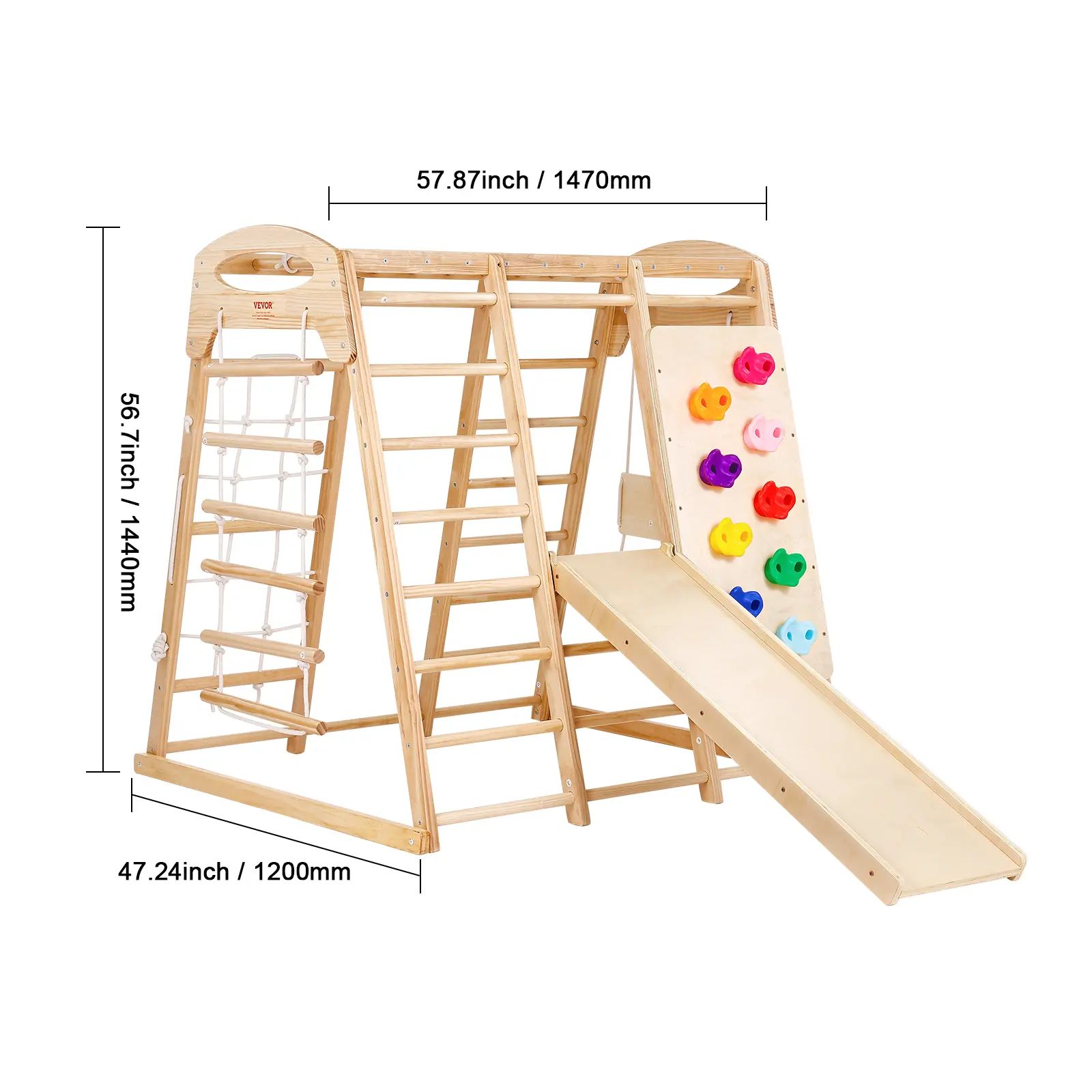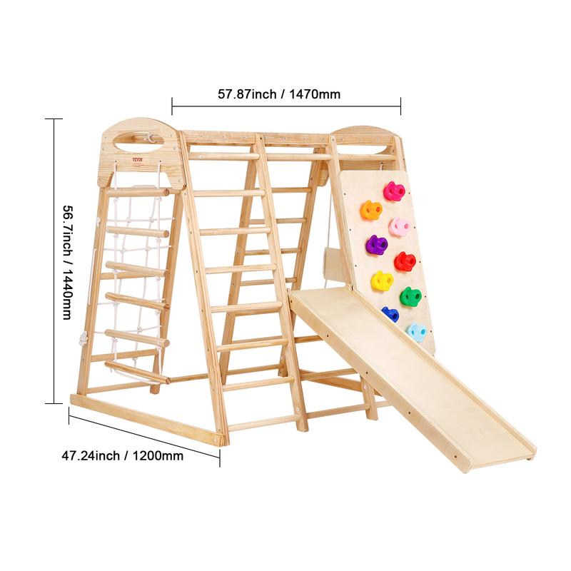 • 7-in-1 Multifunctional: This indoor playground features seven play elements, including a wooden ladder, rope ladder, net ladder, swing, monkey bars, slide, and climbing wall. It provides children with a variety of play experiences in one structure, sparking their imagination and sense of adventure.
