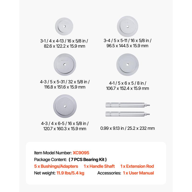 ✨ Comprehensive Sizes: This kit tackles various bearing disassembly tasks. It includes 7 pcs of commonly used disc sleeve sizes and multiple assembly accessories. Perfect for a wide range of applications, ensuring you have the right tools for every job.