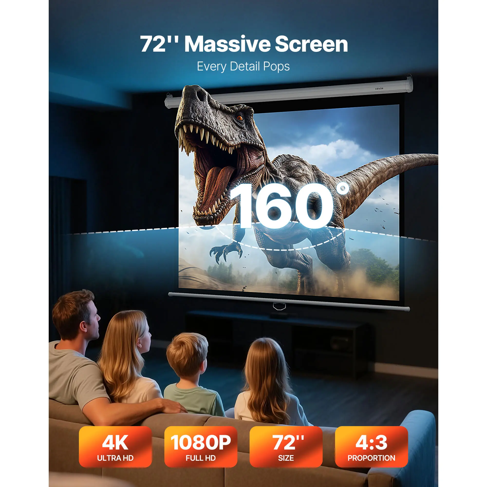 • Wide Viewing Angles: With a 160° wide-angle projection design, our projection screen ensures that viewers can capture crisp, clear images from any seat. This enhances viewing flexibility, making every corner a prime spot for enjoying the show